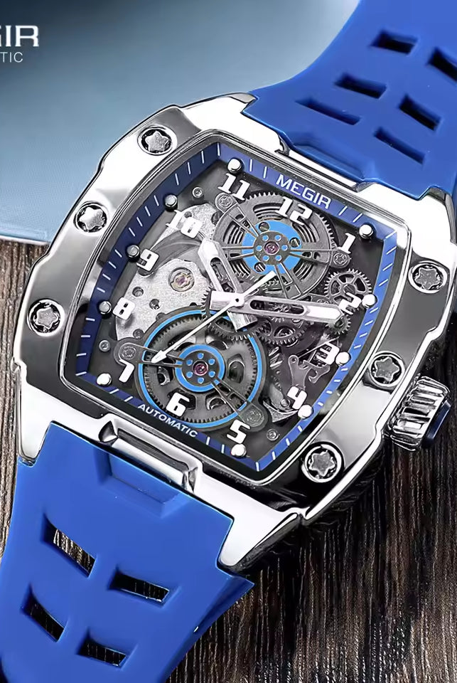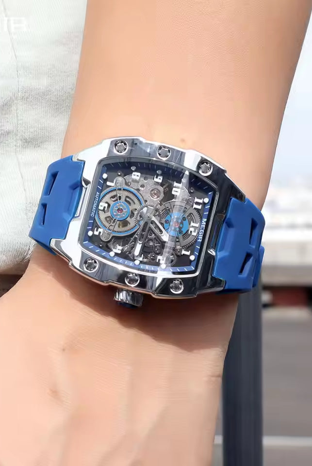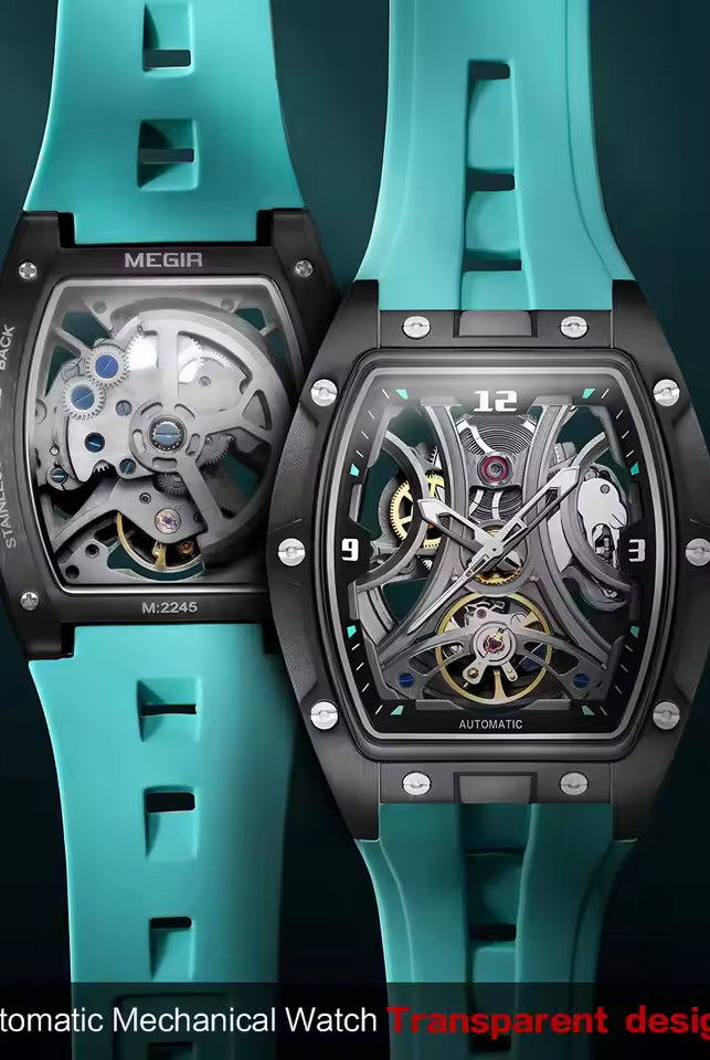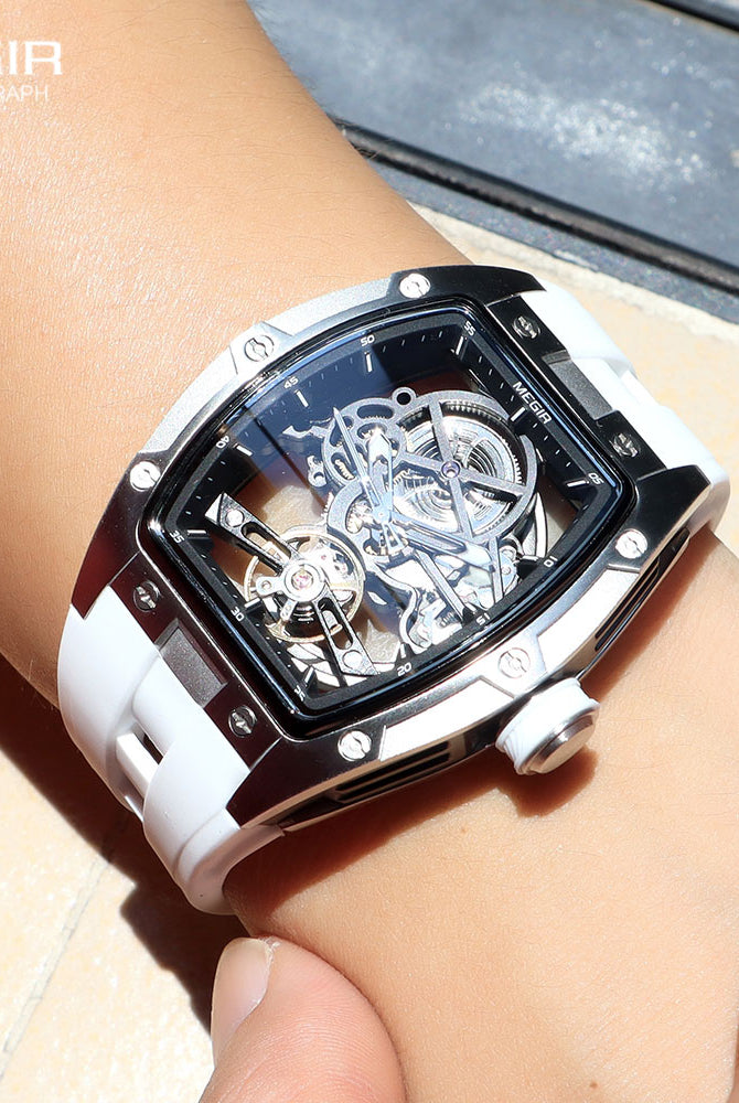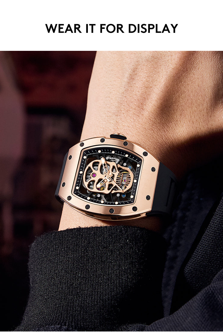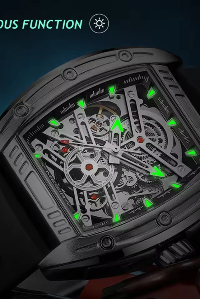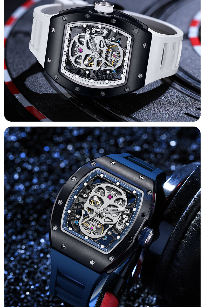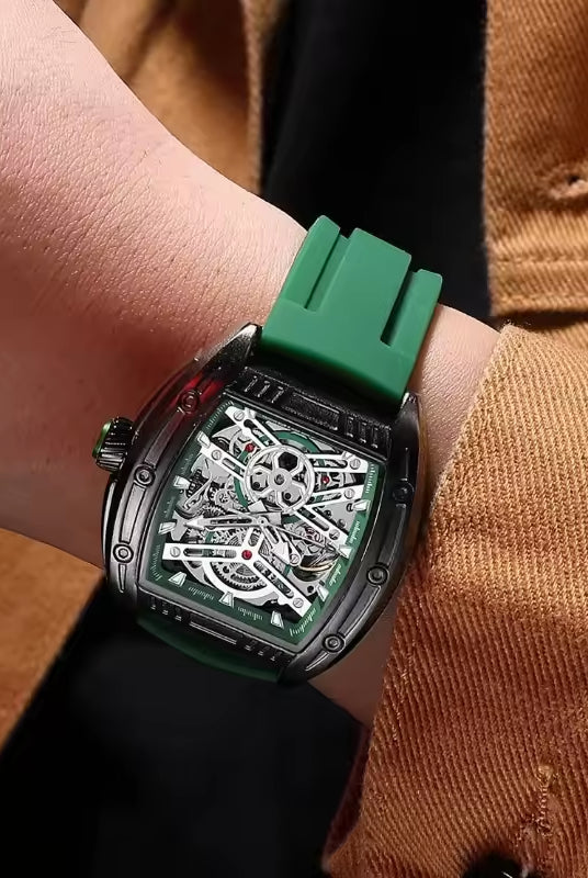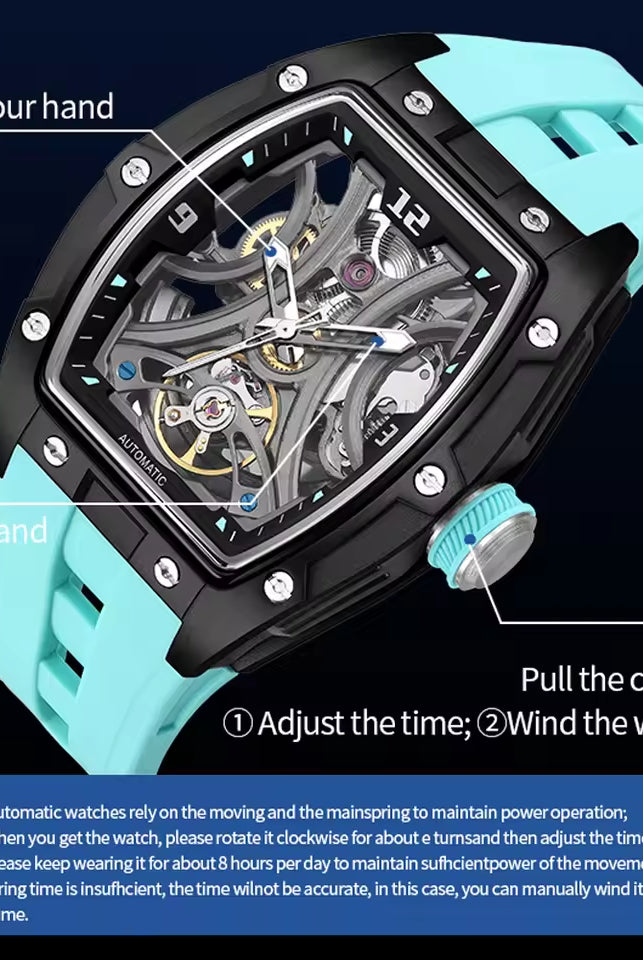 Latest Luxury Design -Skeleton Face With Rubber Strap Mechanical Movement Waterproof Watch