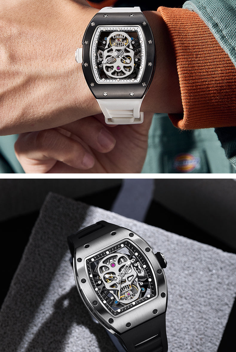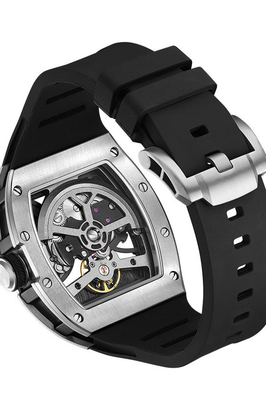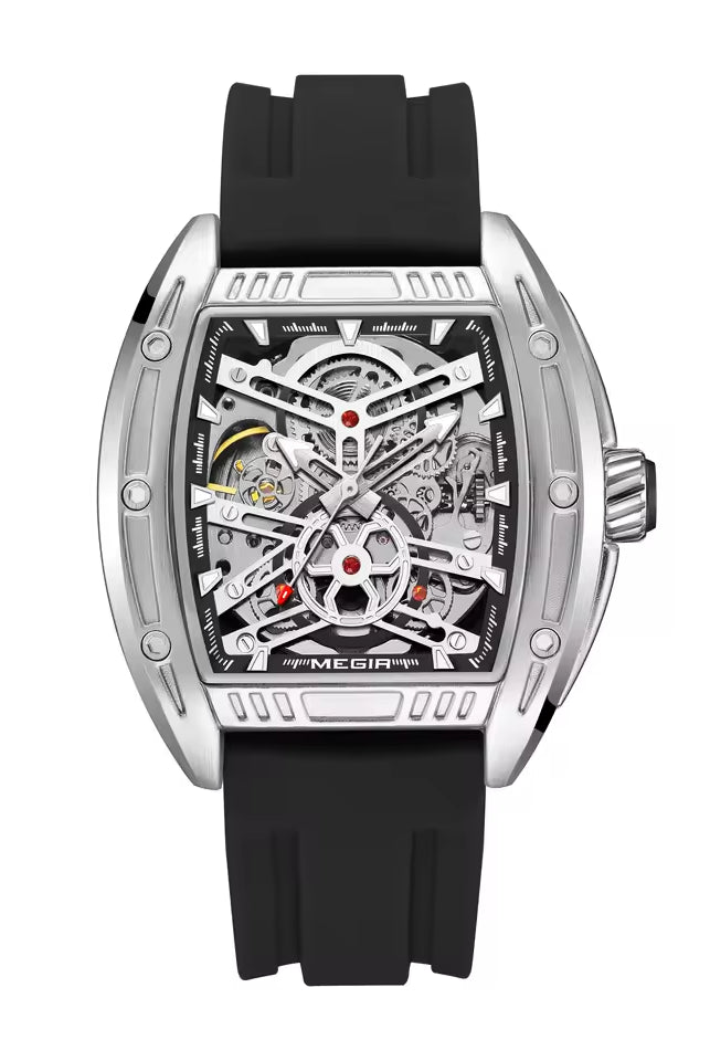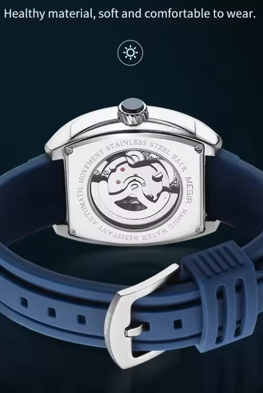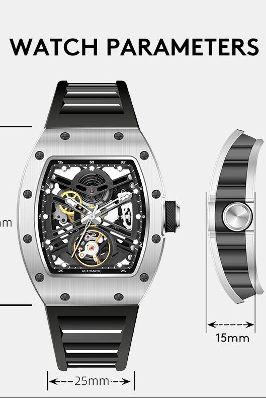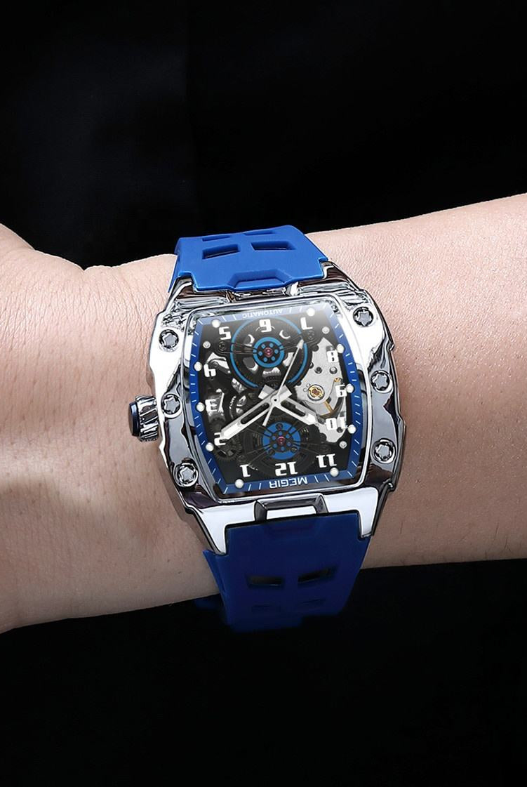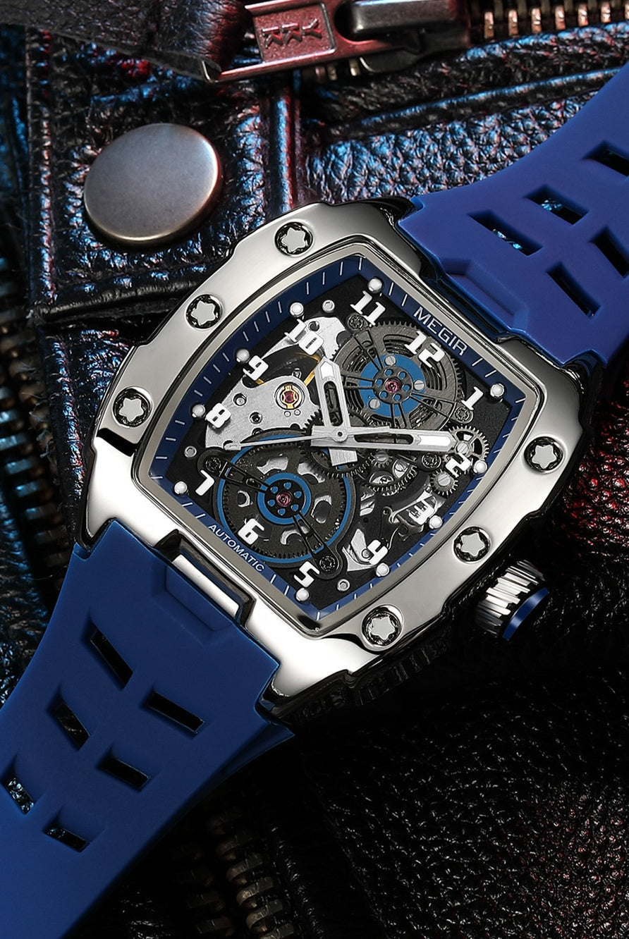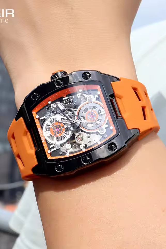 Latest Luxury Design -Skeleton Face With Rubber Strap Mechanical Movement Waterproof Watch