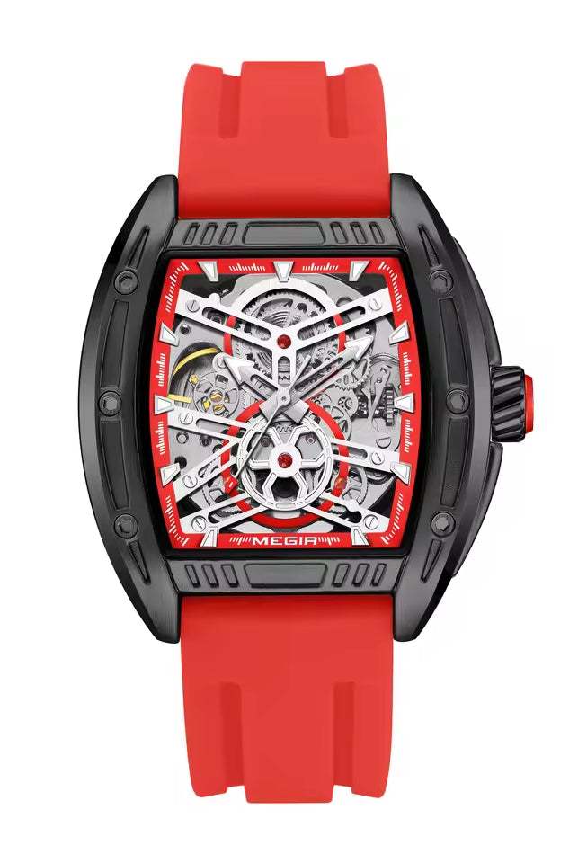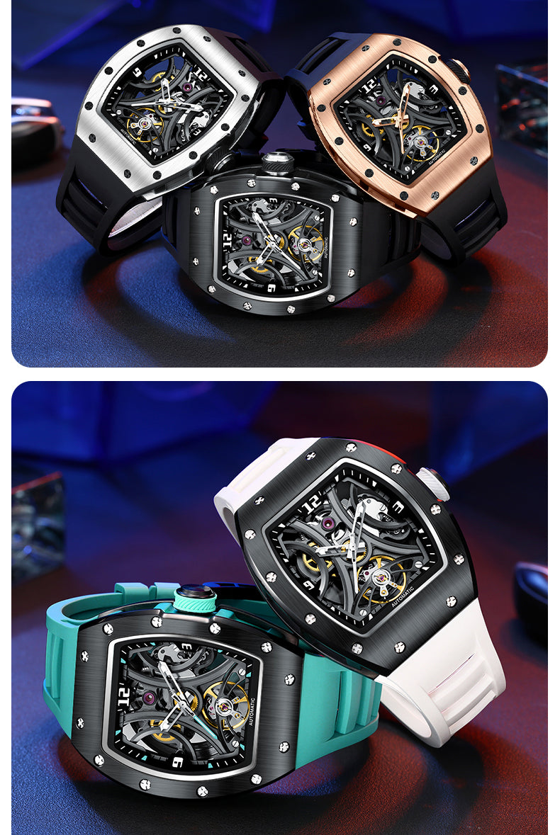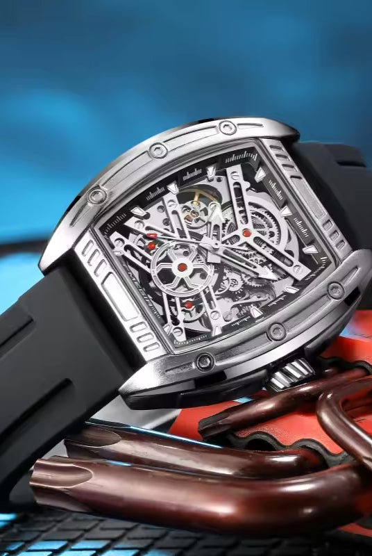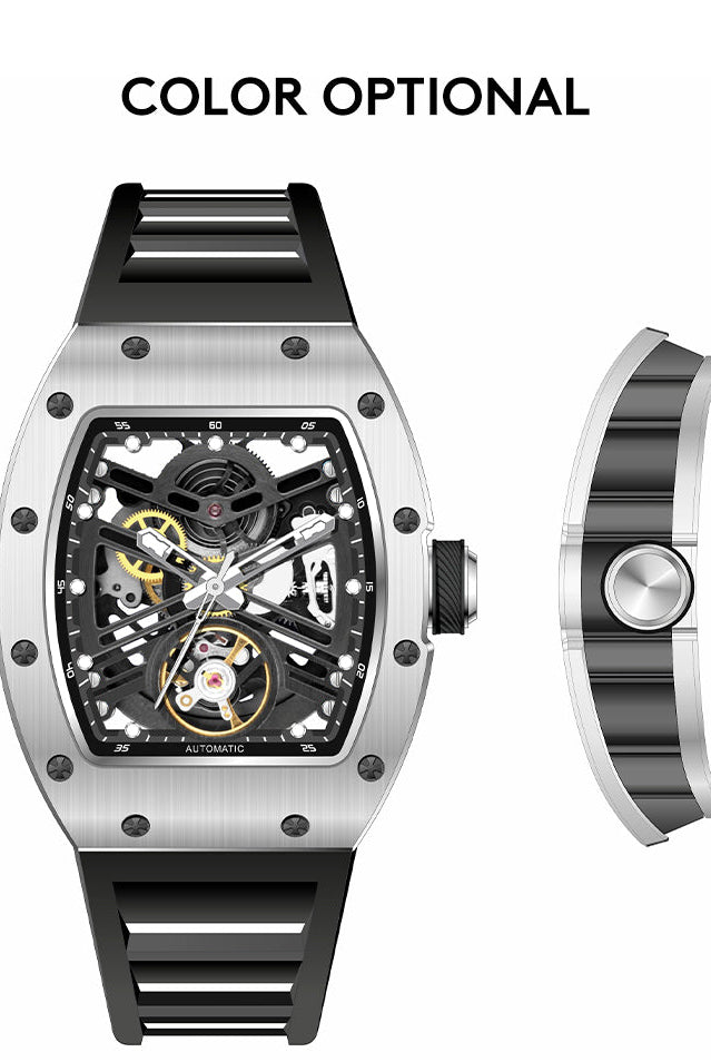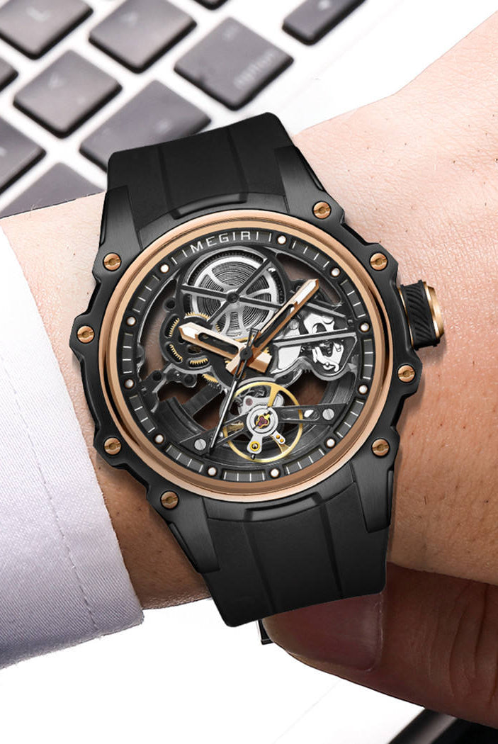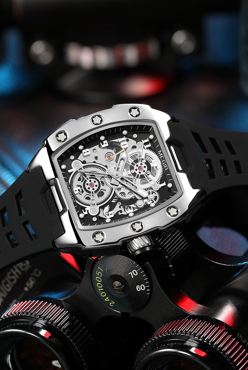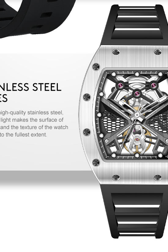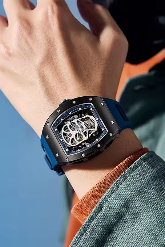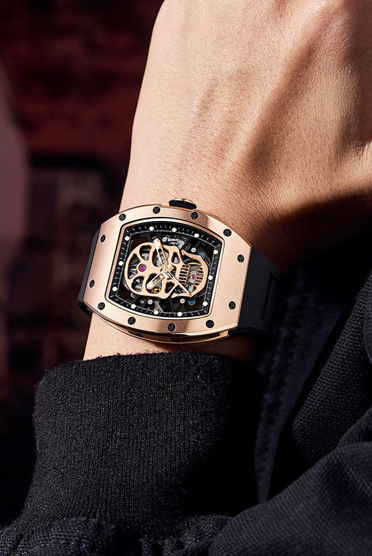 Latest Luxury Design -Skeleton Face With Rubber Strap Mechanical Movement Waterproof Watch
