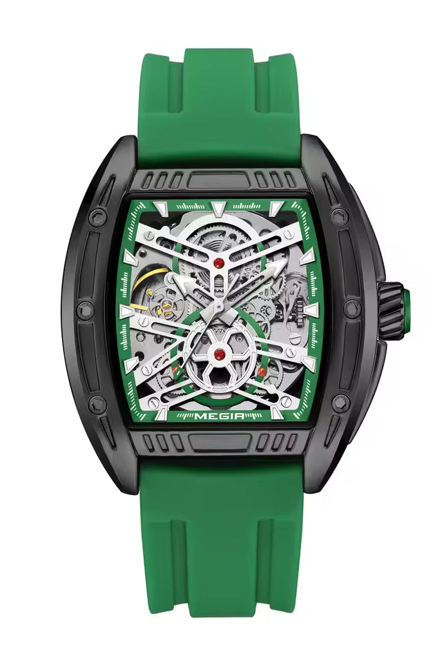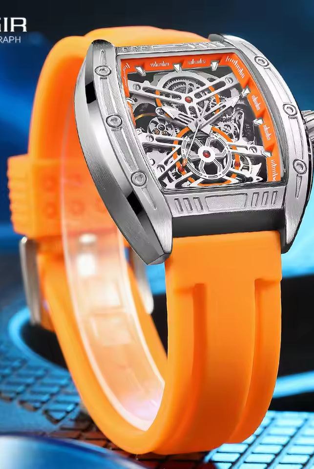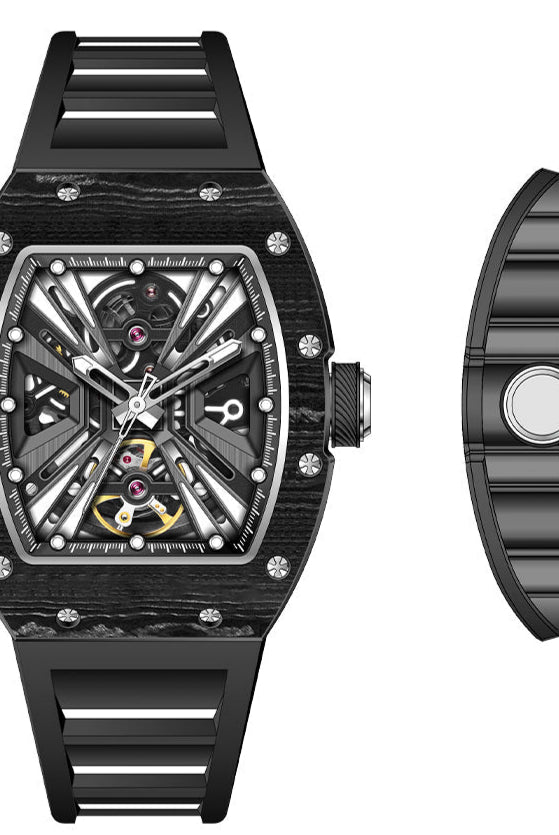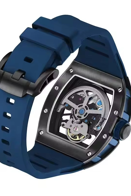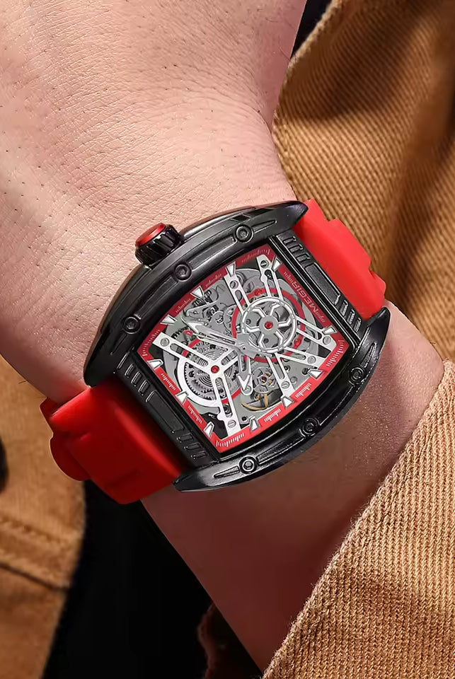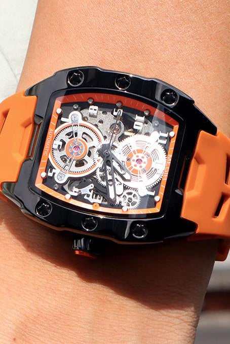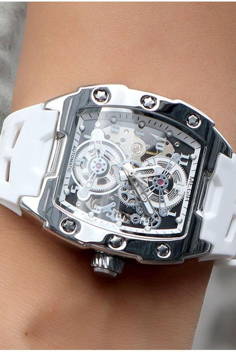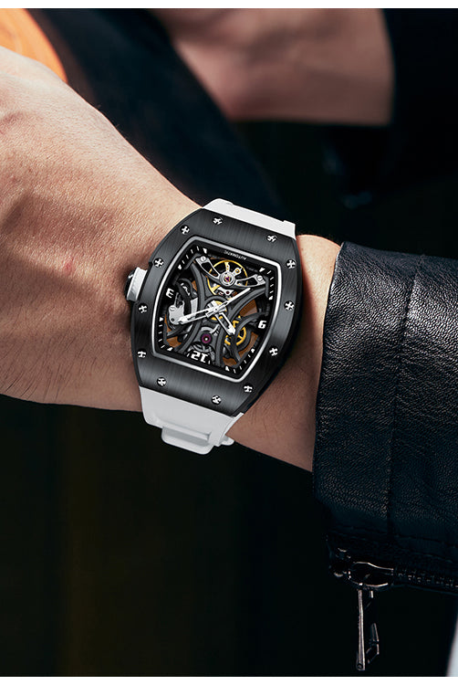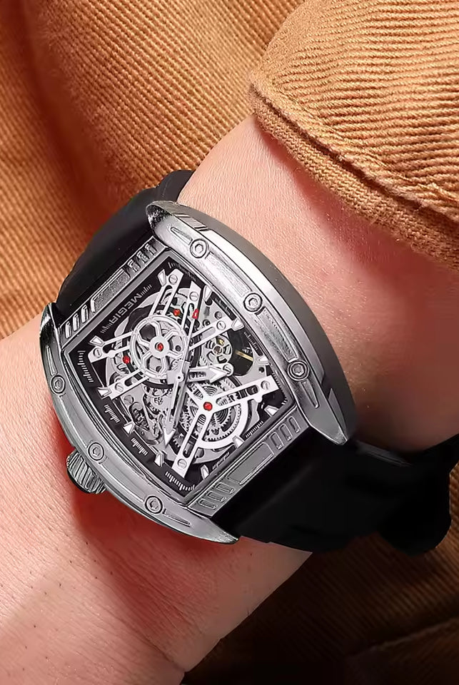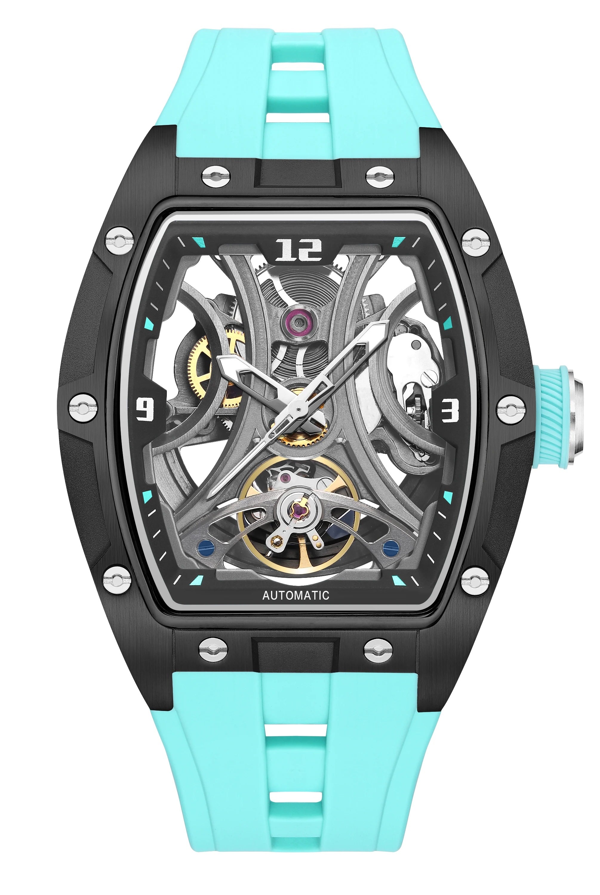 Latest Luxury Design -Skeleton Face With Rubber Strap Mechanical Movement Waterproof Watch