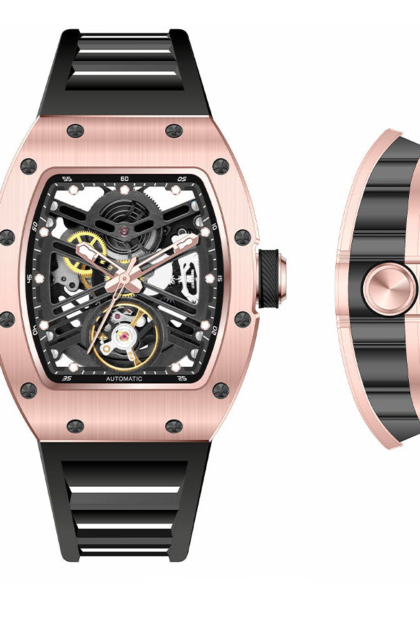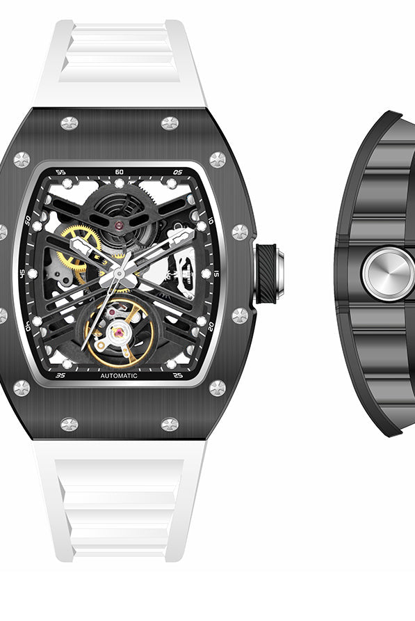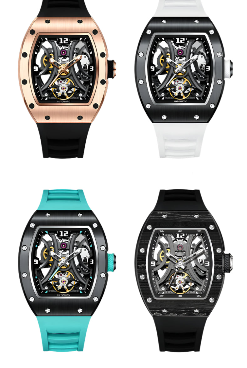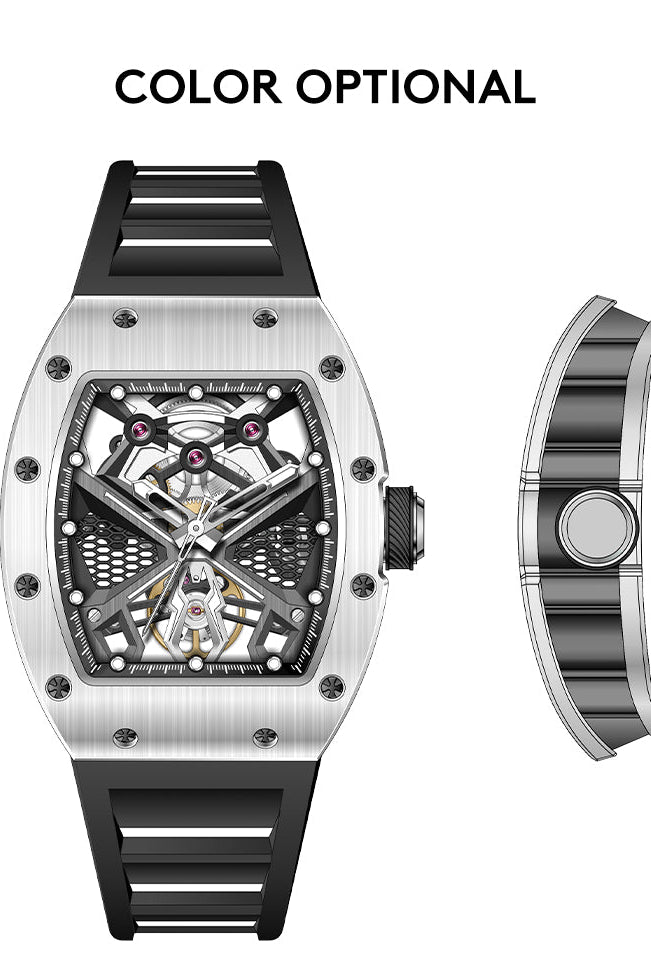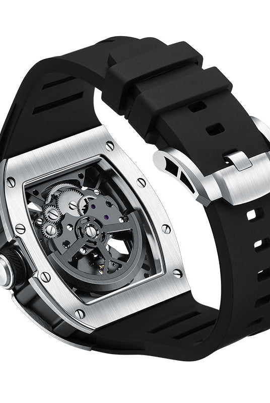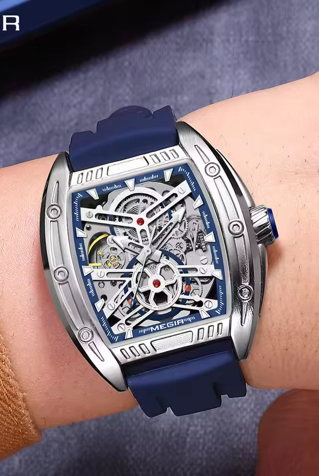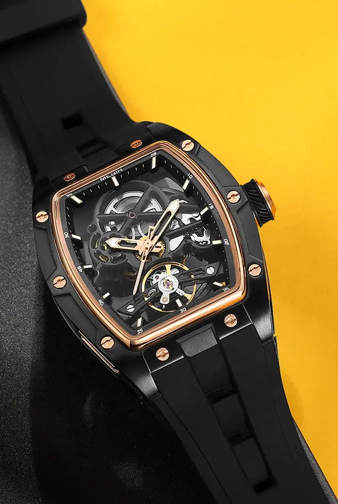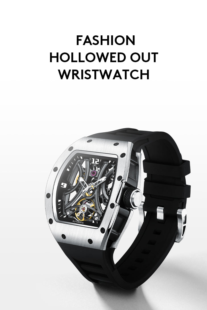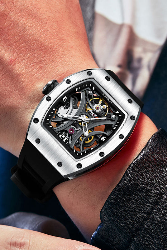 Latest Luxury Design -Skeleton Face With Rubber Strap Mechanical Movement Waterproof Watch