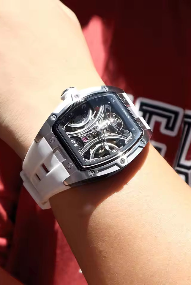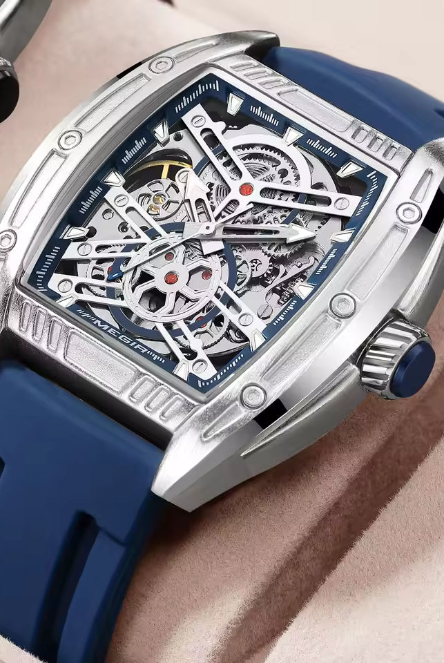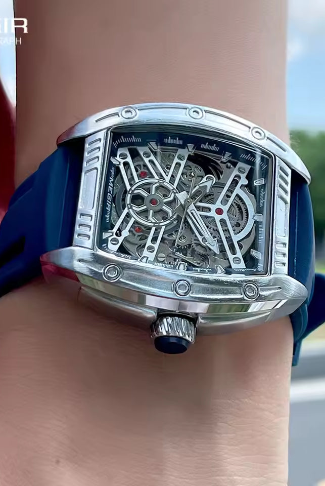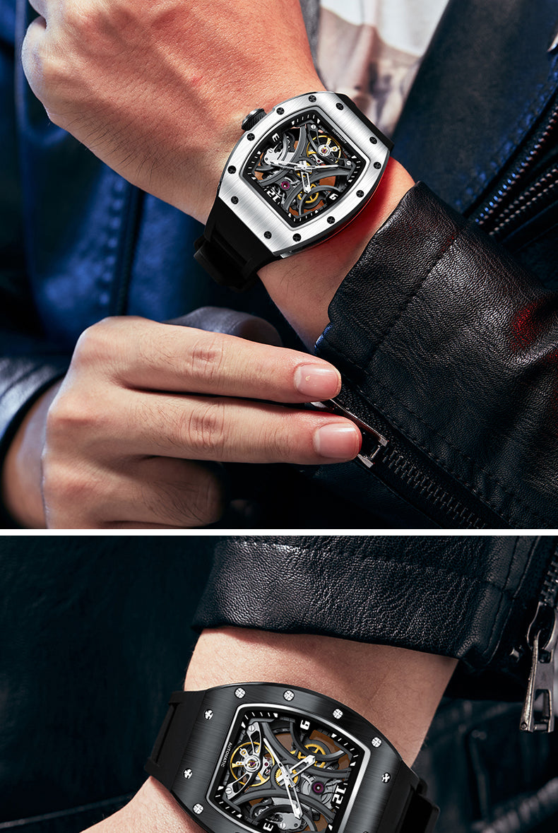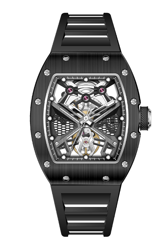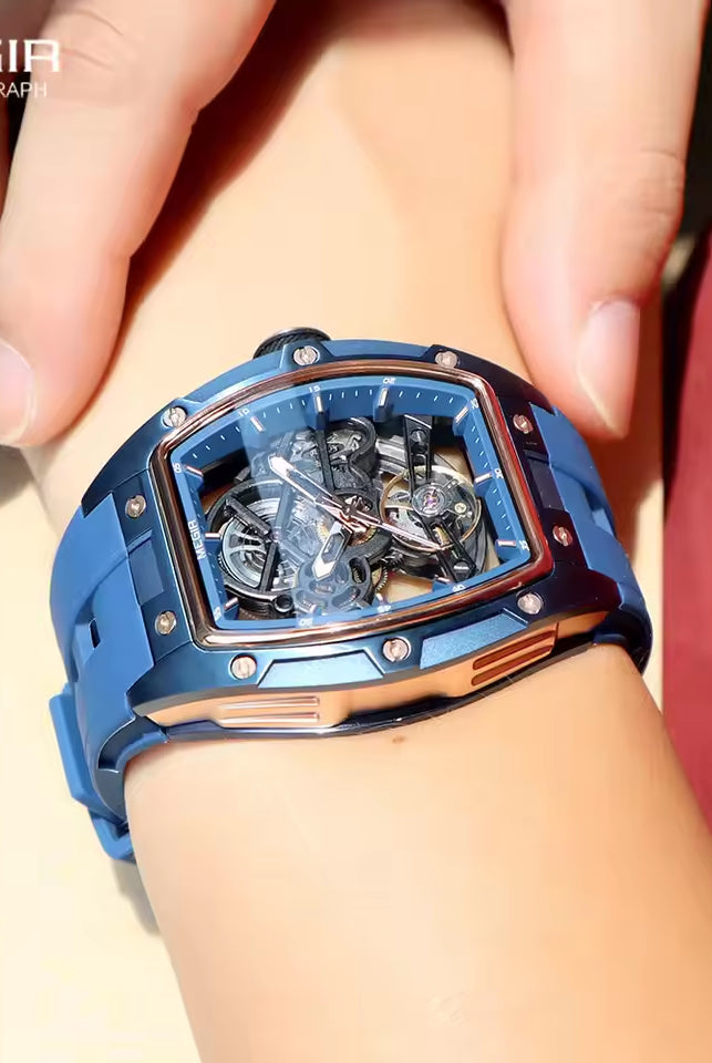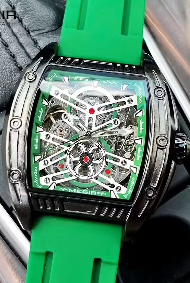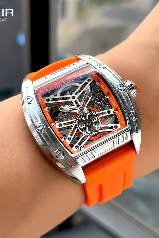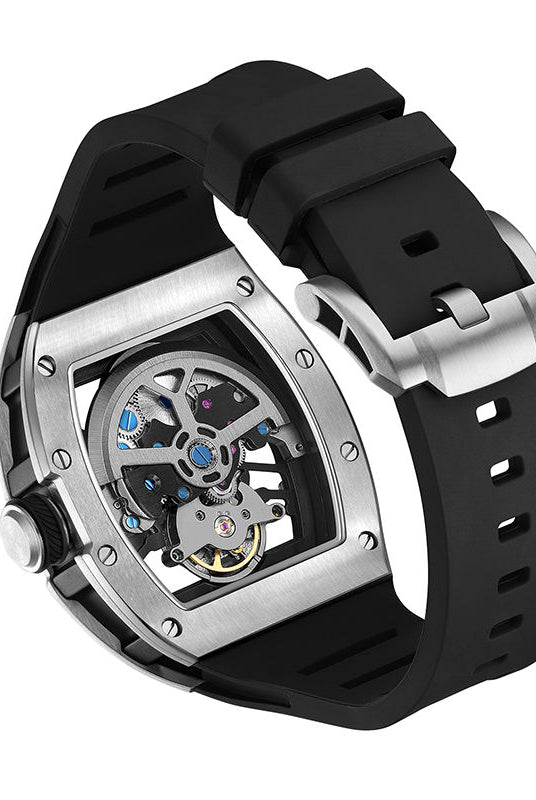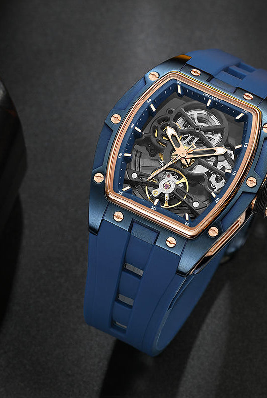 Latest Luxury Design -Skeleton Face With Rubber Strap Mechanical Movement Waterproof Watch