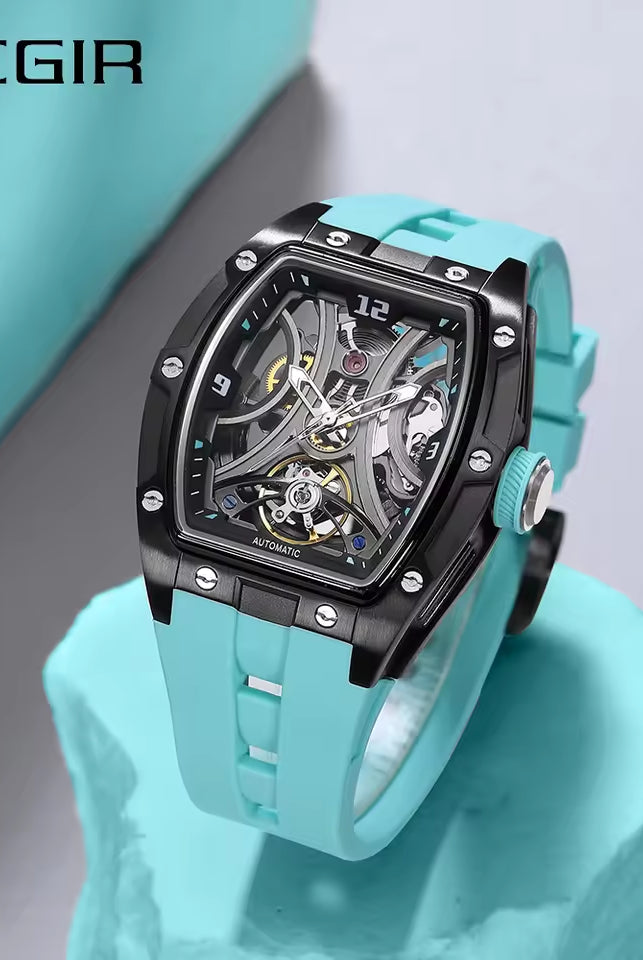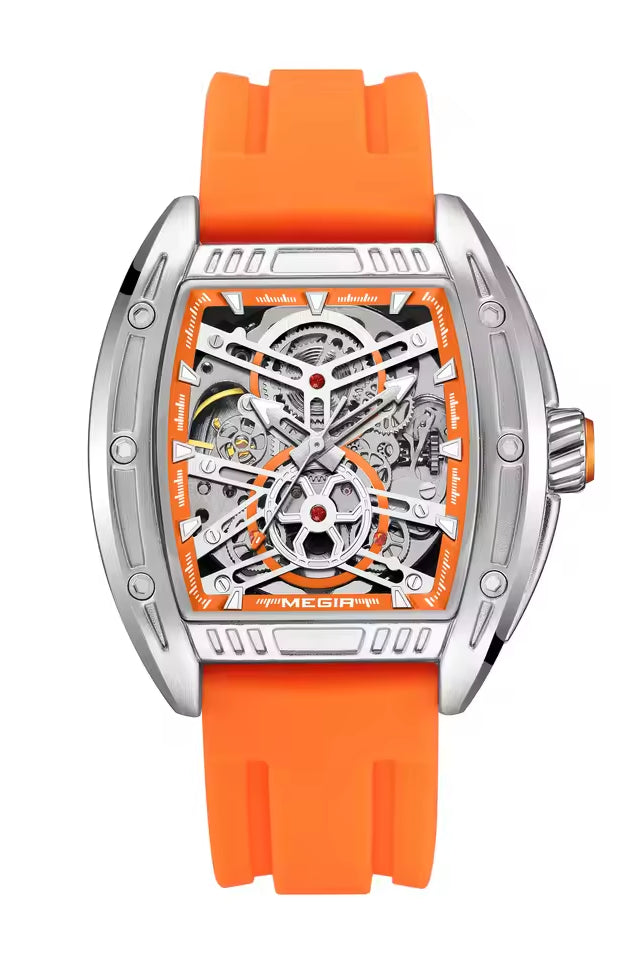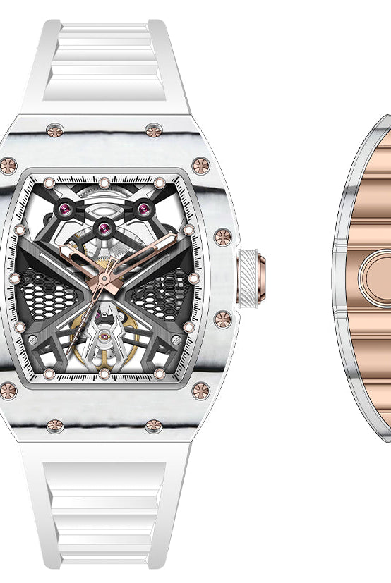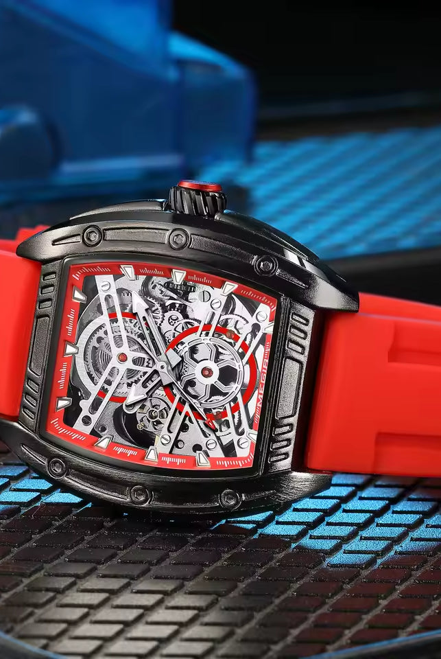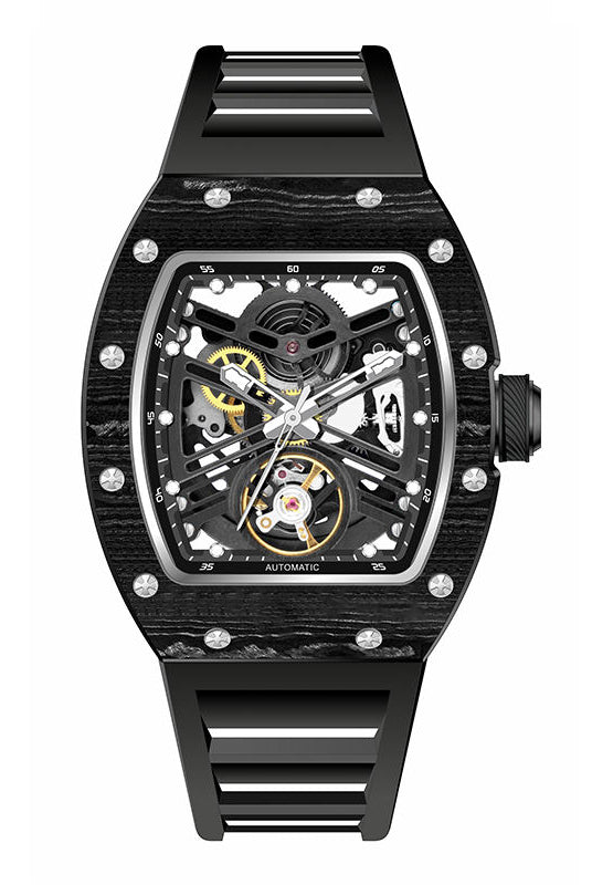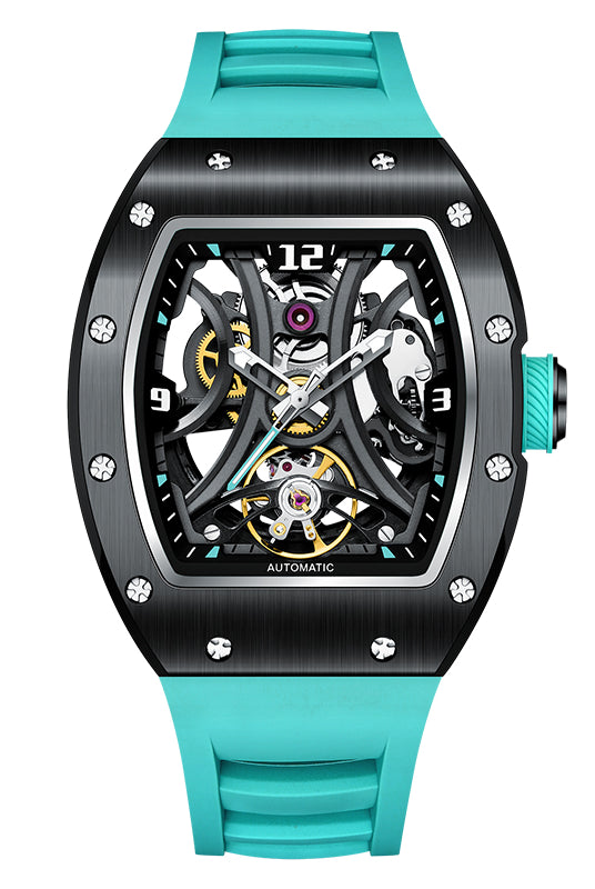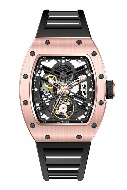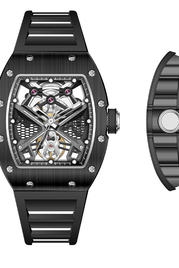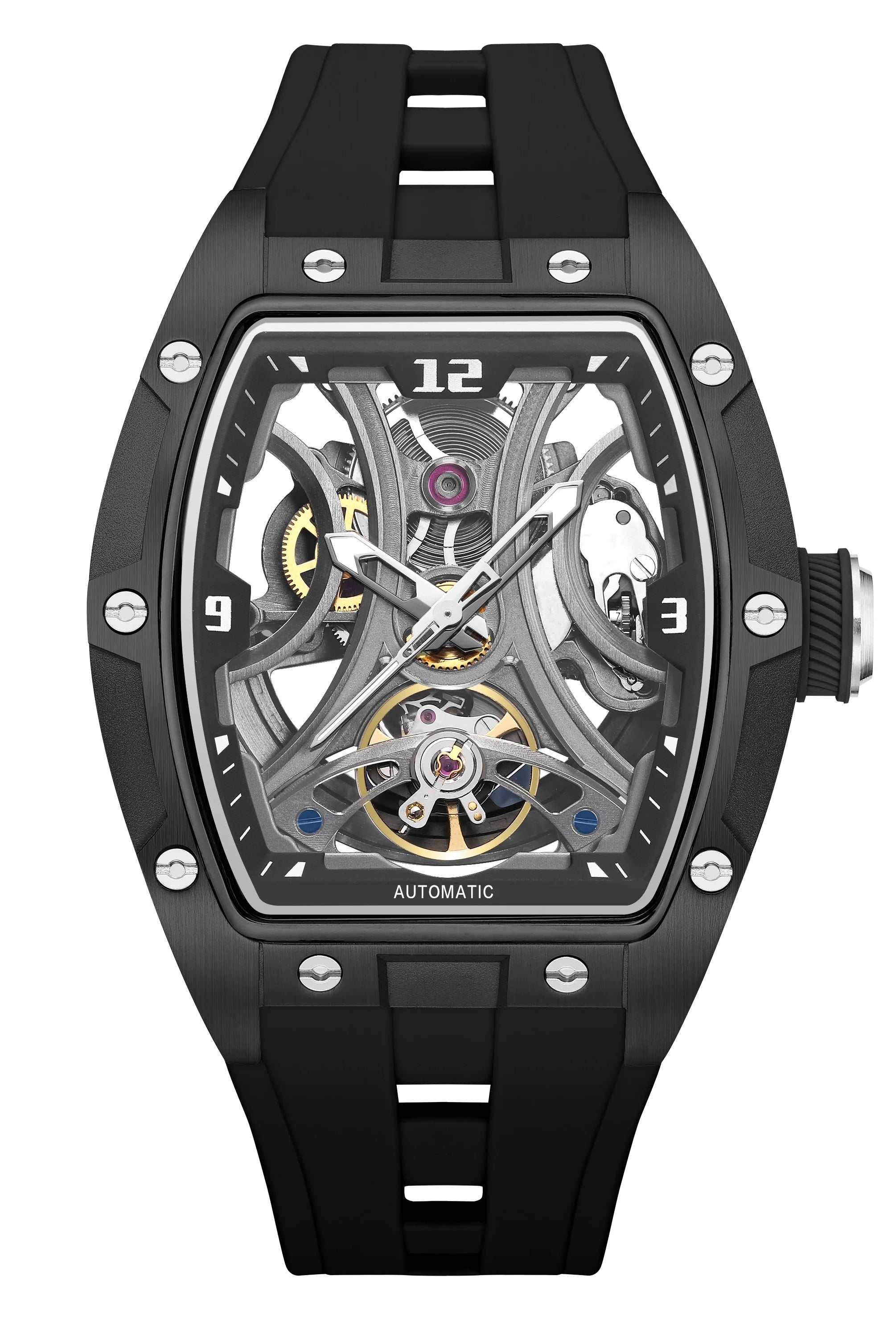 Latest Luxury Design -Skeleton Face With Rubber Strap Mechanical Movement Waterproof Watch