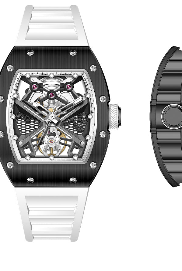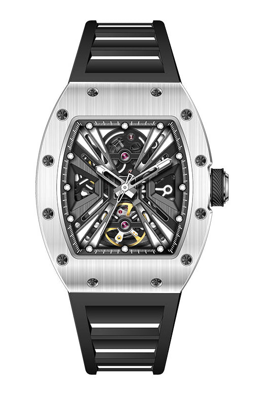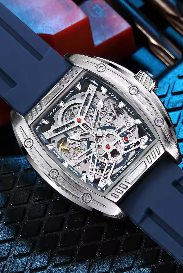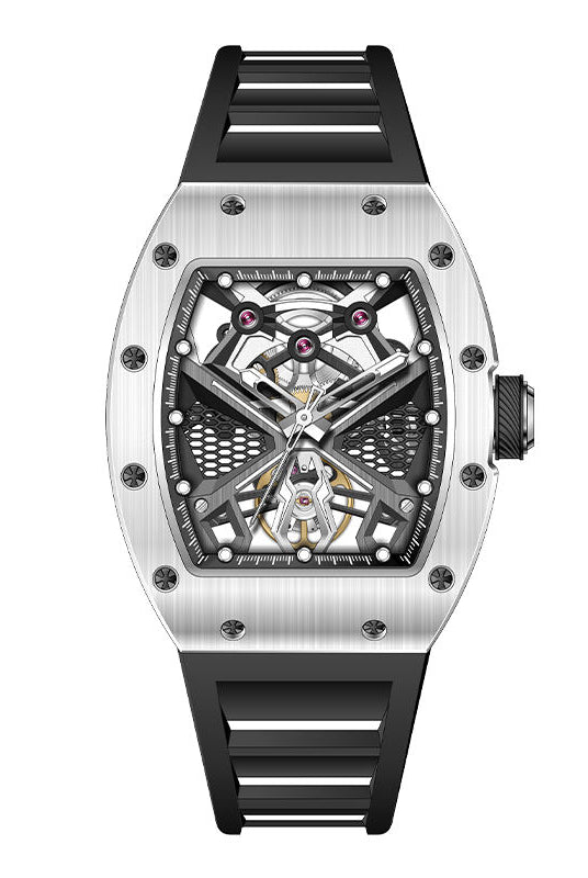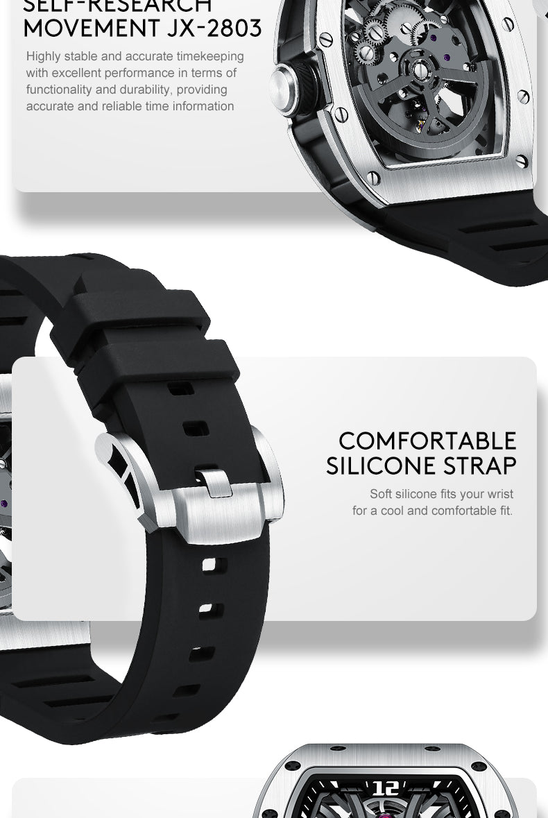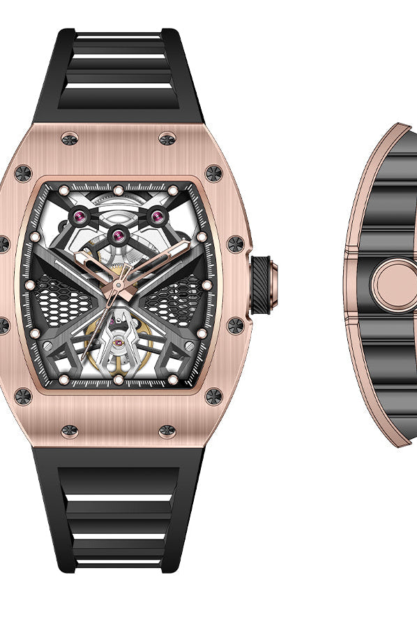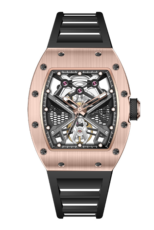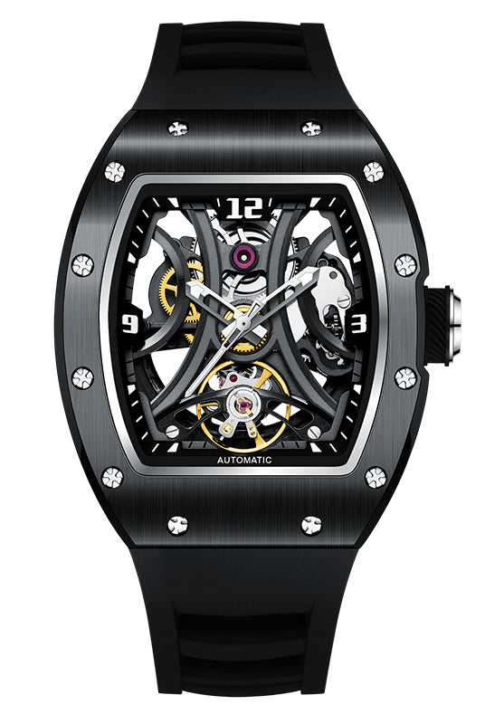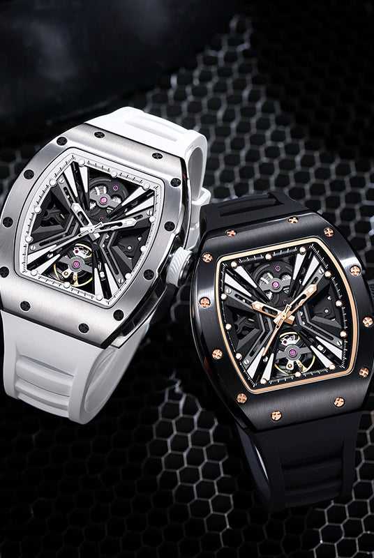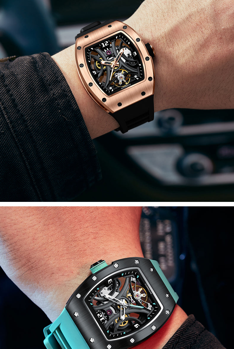 Latest Luxury Design -Skeleton Face With Rubber Strap Mechanical Movement Waterproof Watch