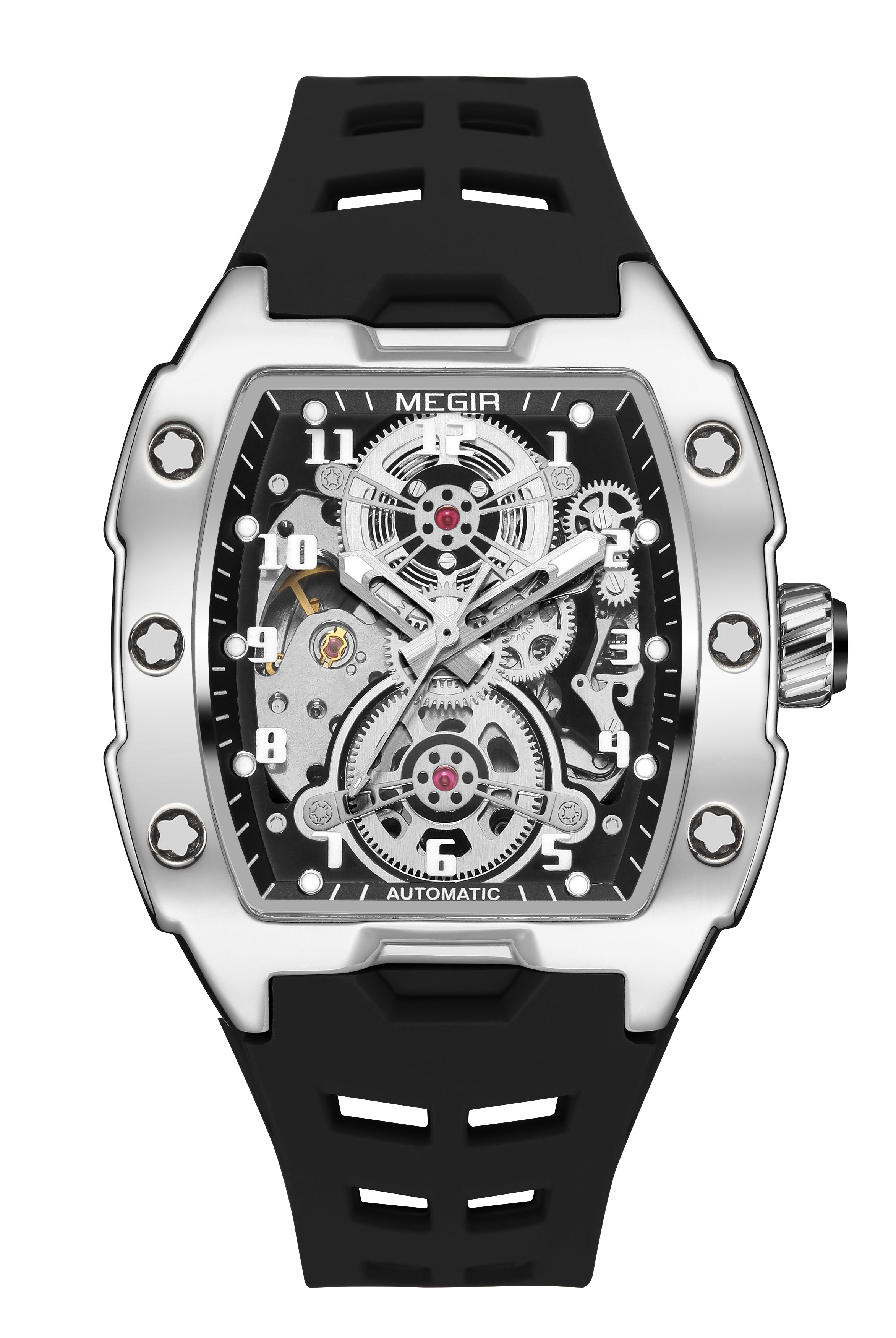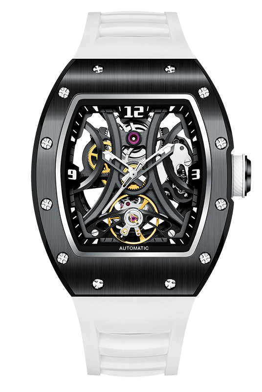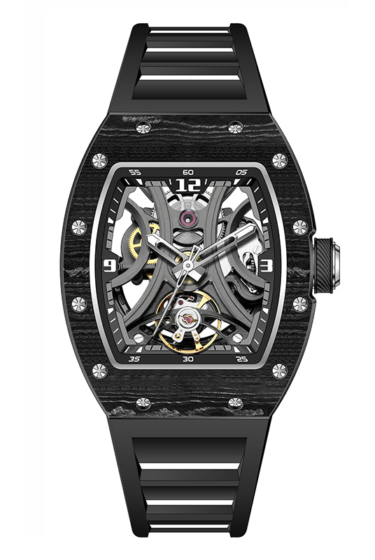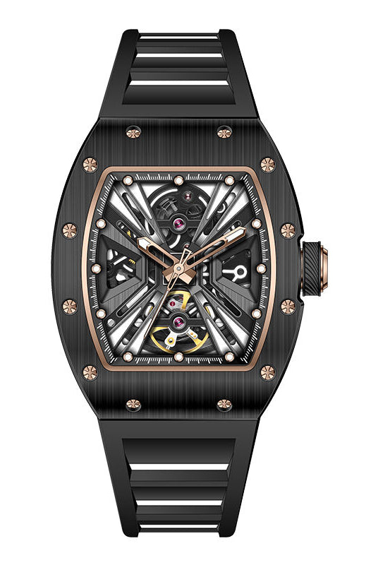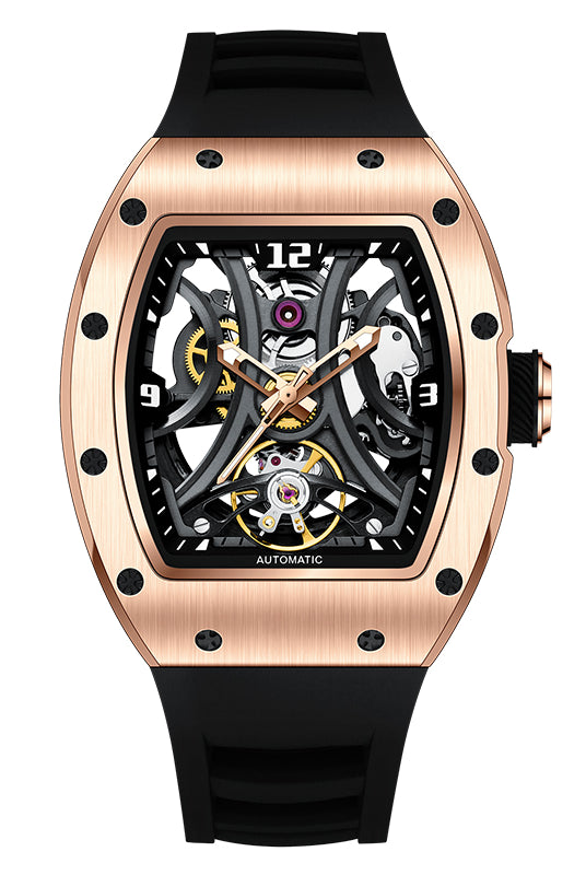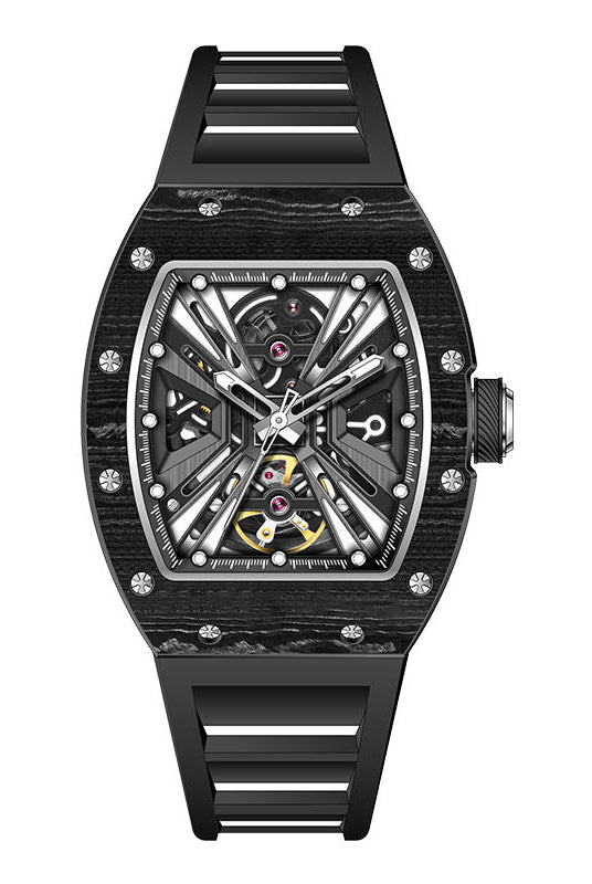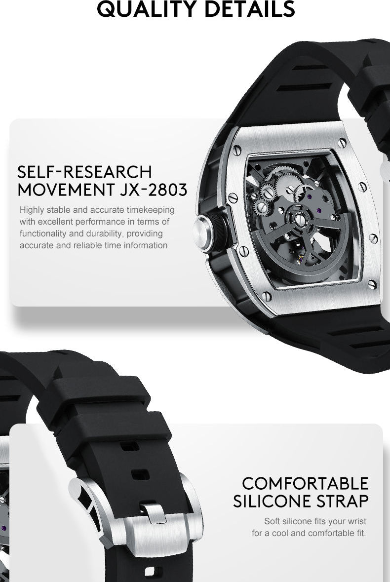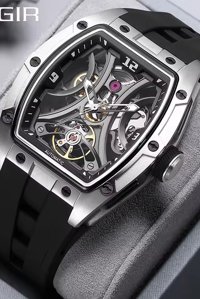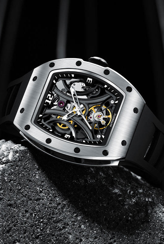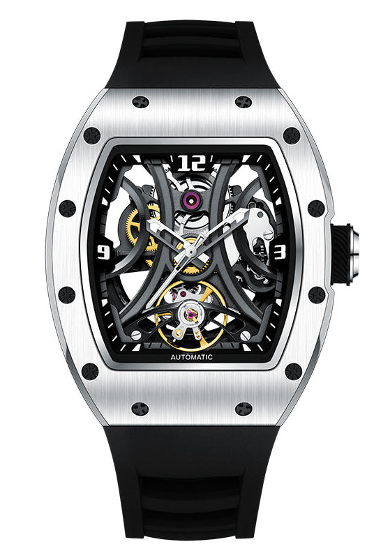 Latest Luxury Design -Skeleton Face With Rubber Strap Mechanical Movement Waterproof Watch