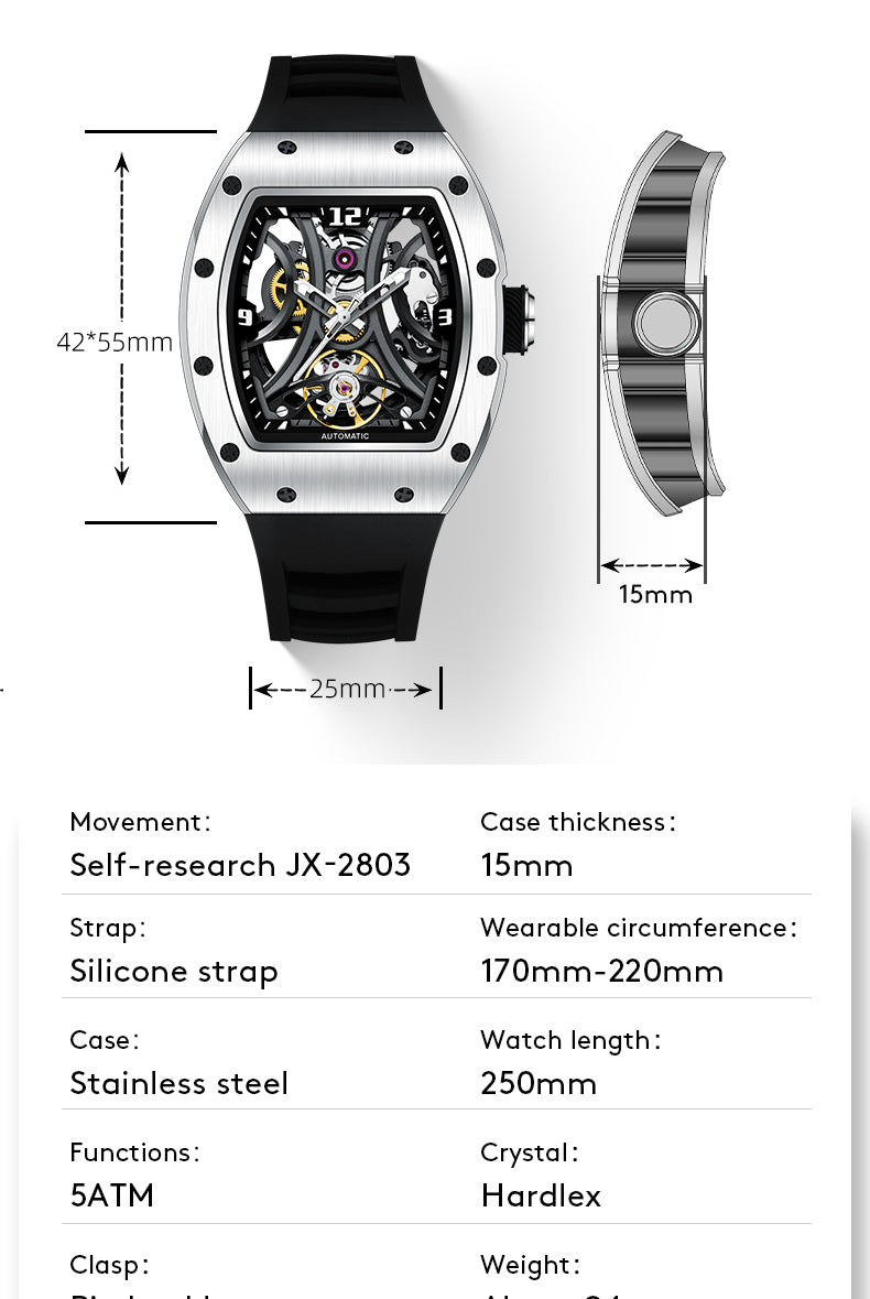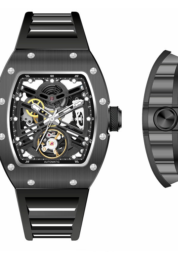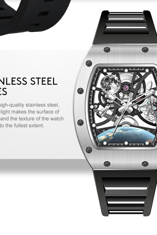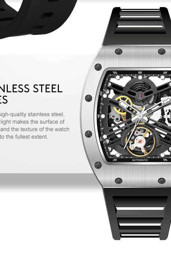 Luxury Automatic Mechanical Watch for Men Stainless Steel Case Skeleton Waterproof