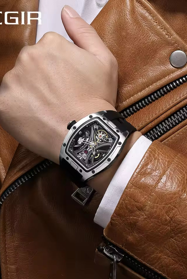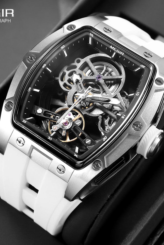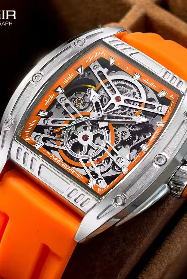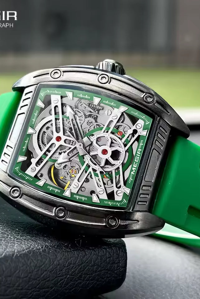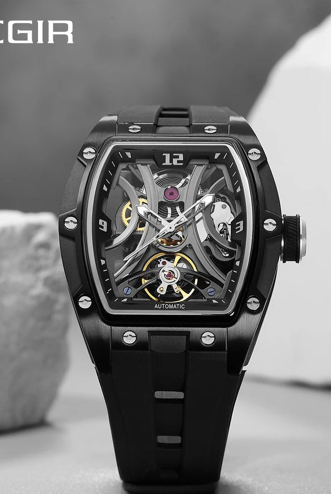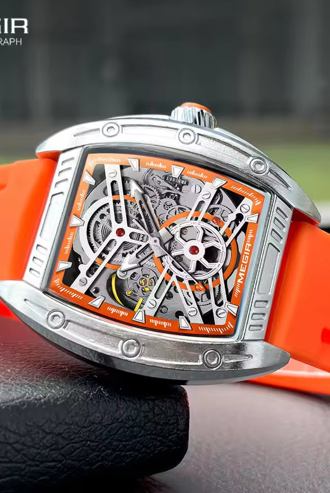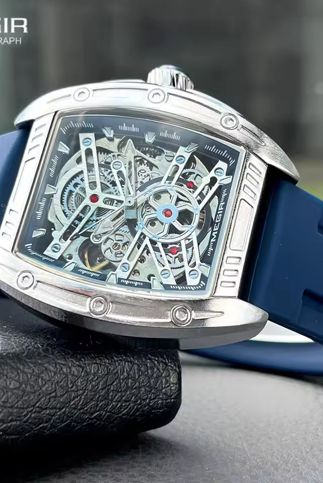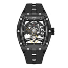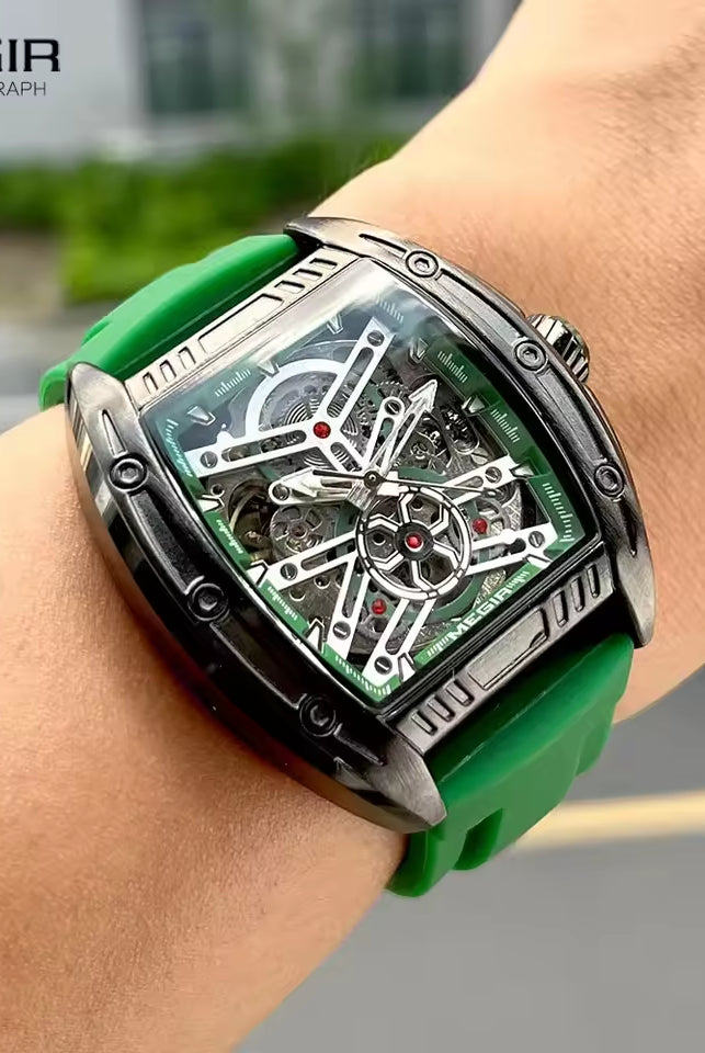 MEGIR 2245 Black Wine Barrel Tourbillon Automatic Watch – Luxury, Hollow Dial, Waterproof, Luminous