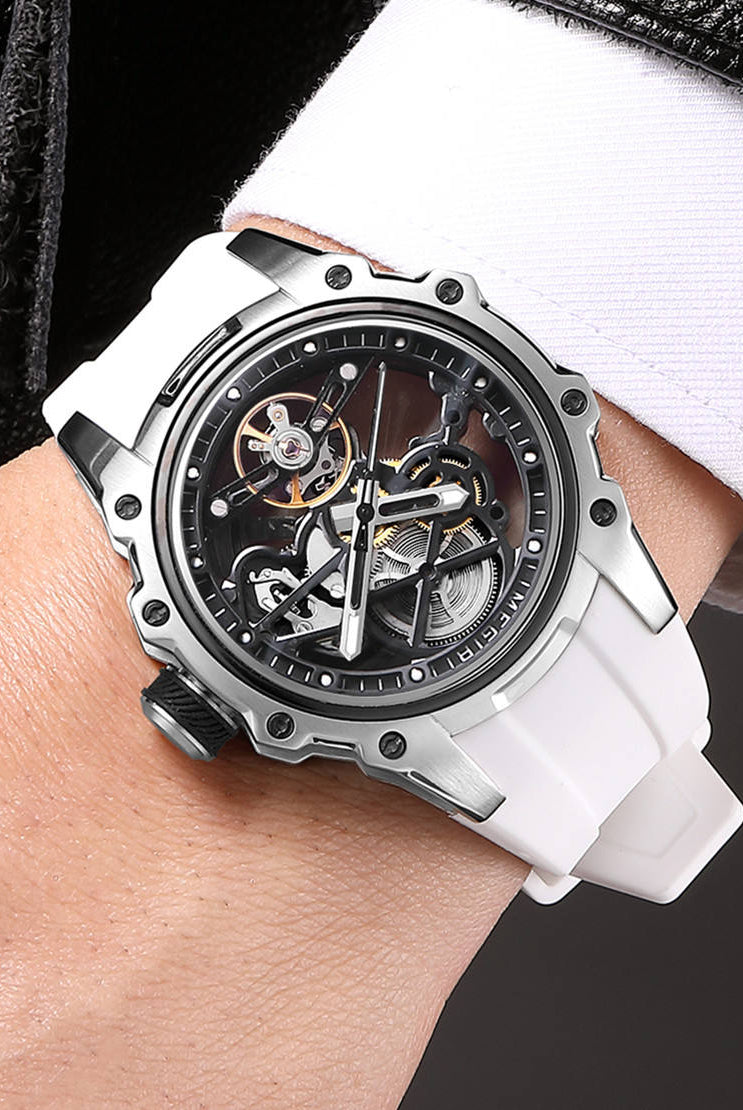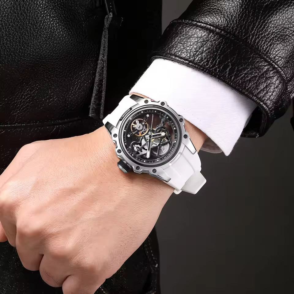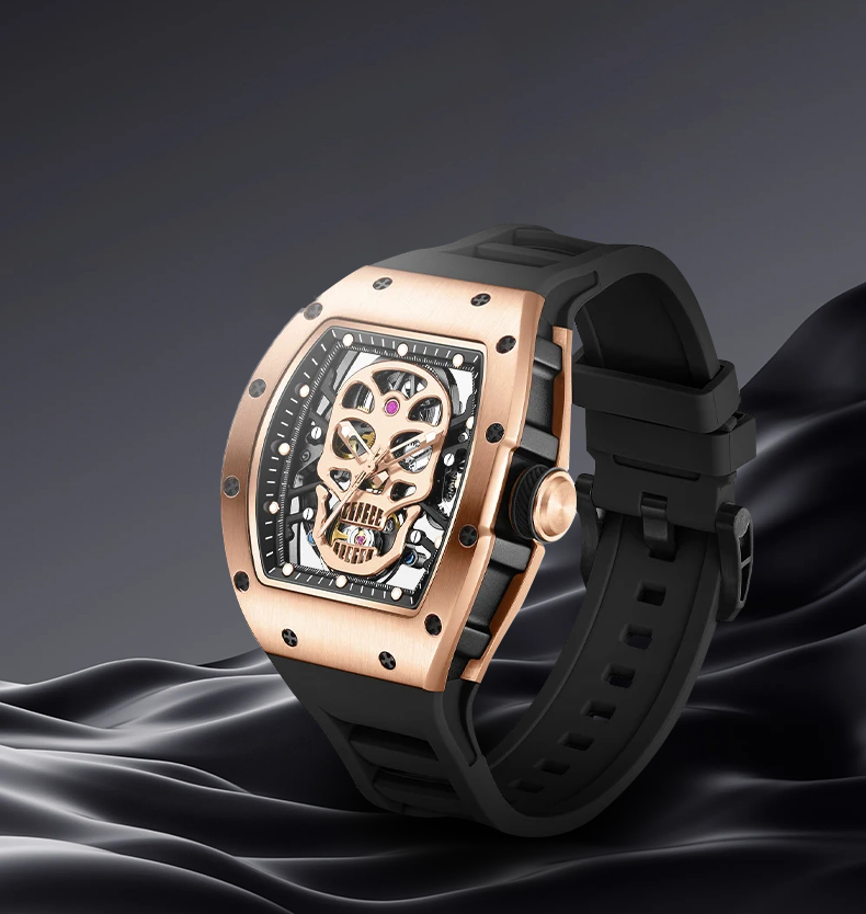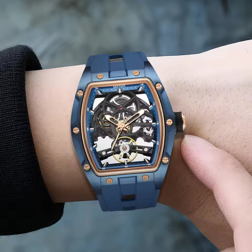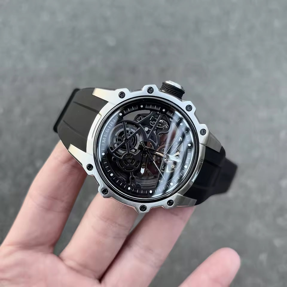 Latest Luxury Design -Skeleton Face With Rubber Strap Mechanical Movement Waterproof Watch