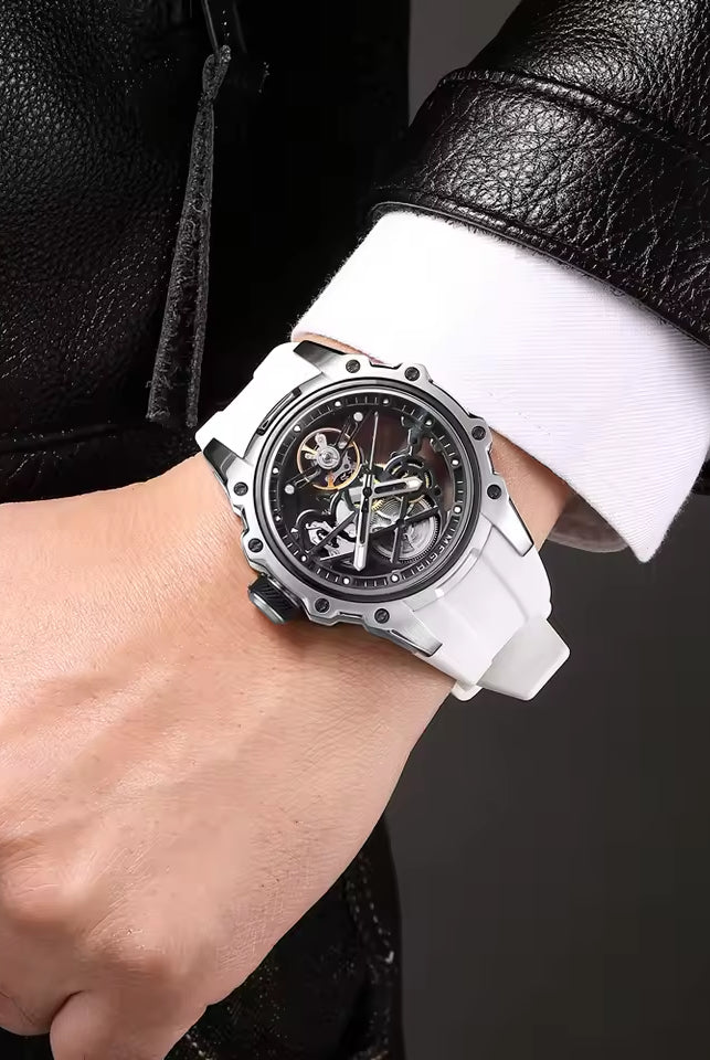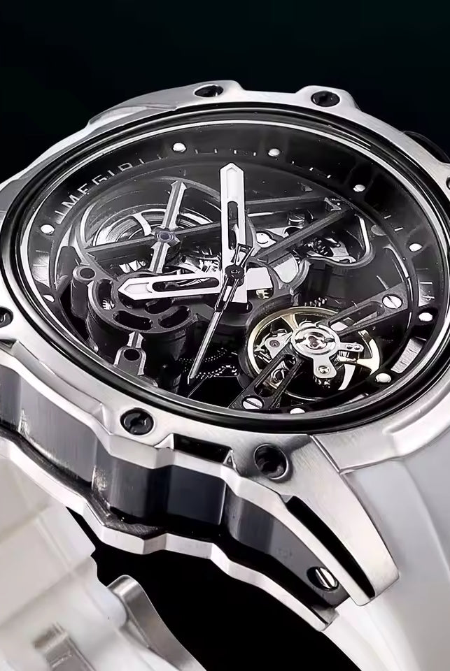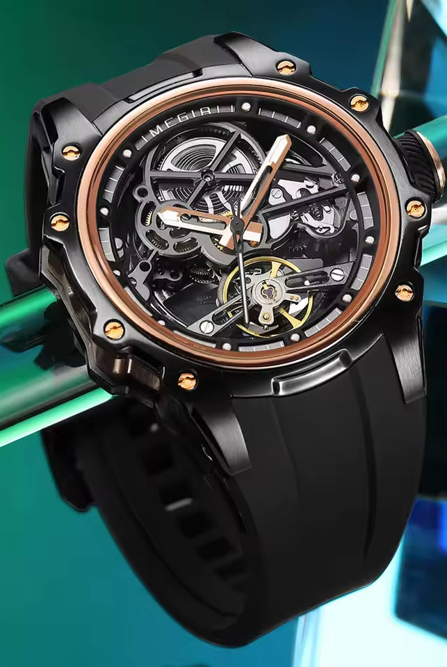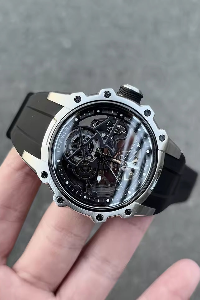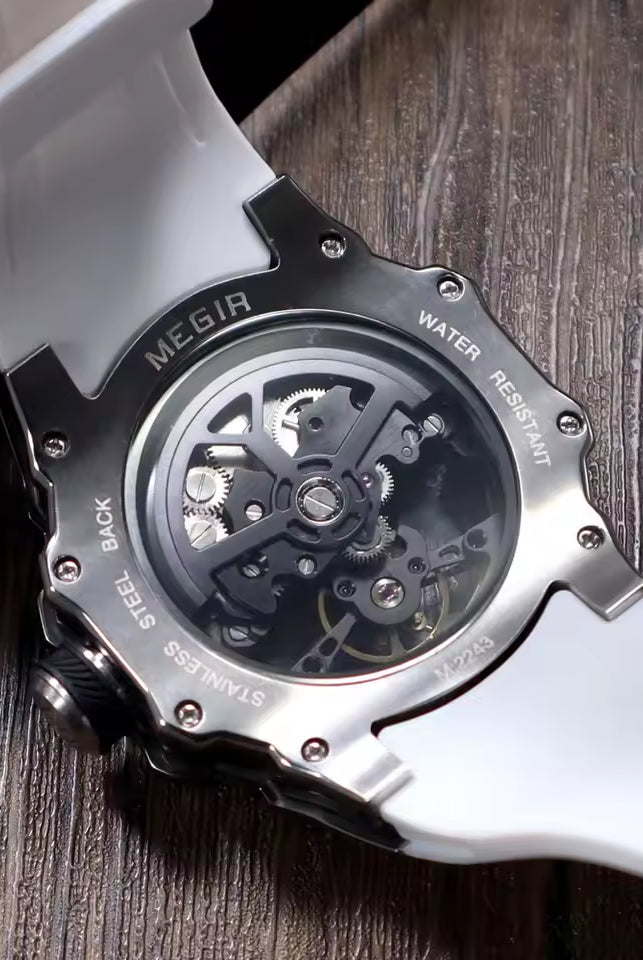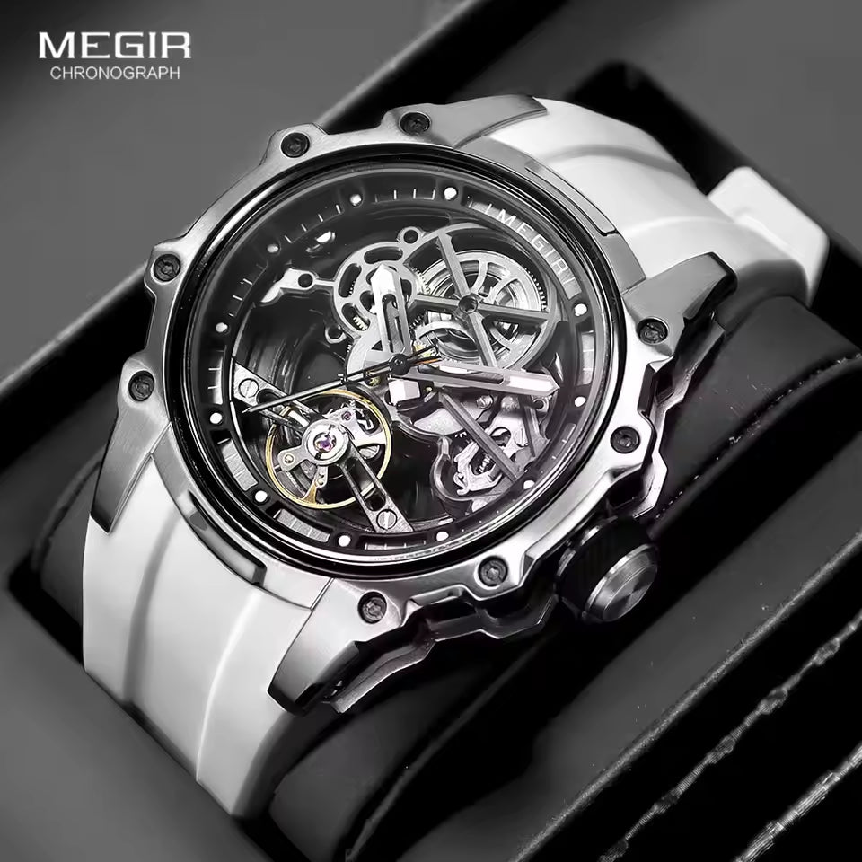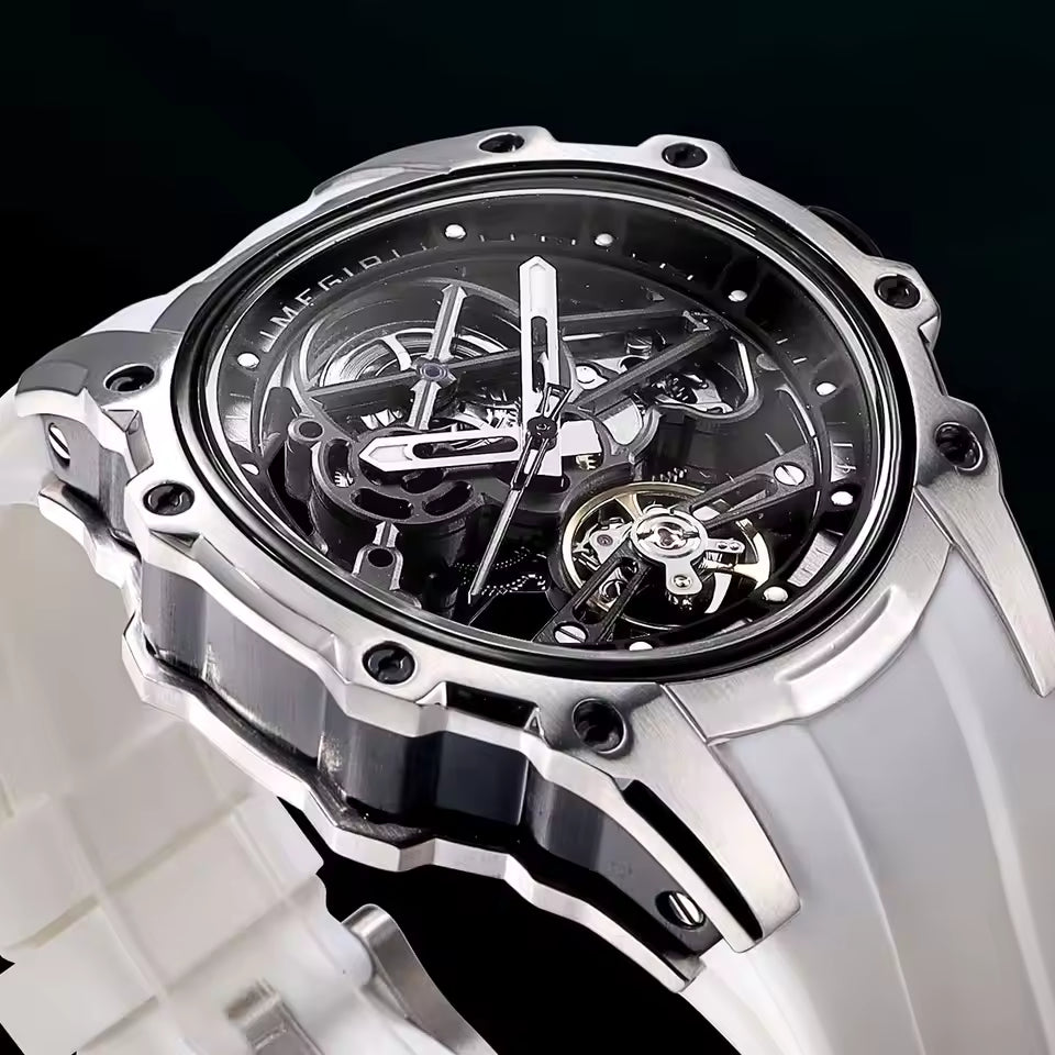 Latest Luxury Design -Skeleton Face With Rubber Strap Mechanical Movement Waterproof Watch
