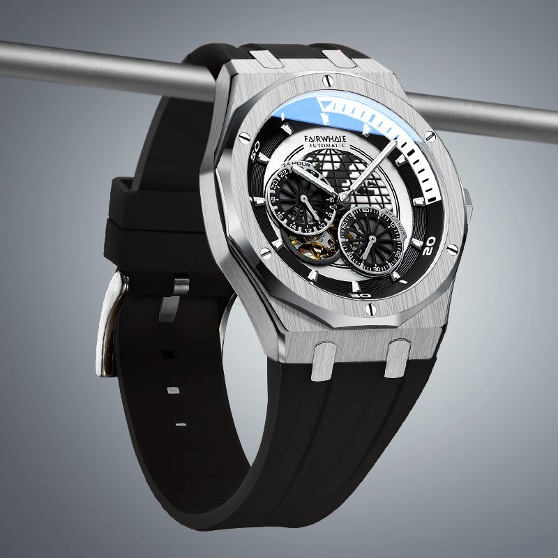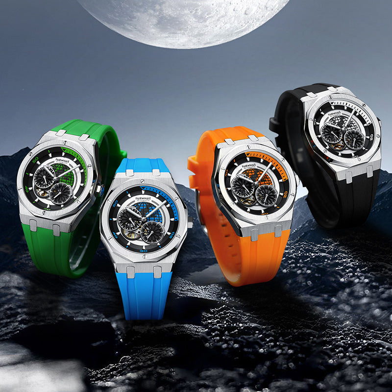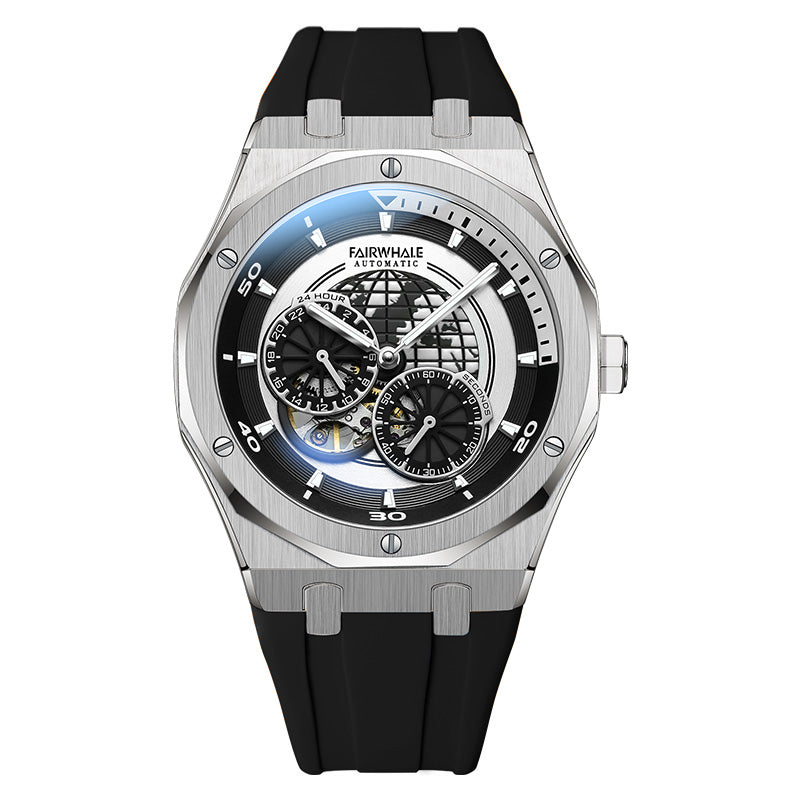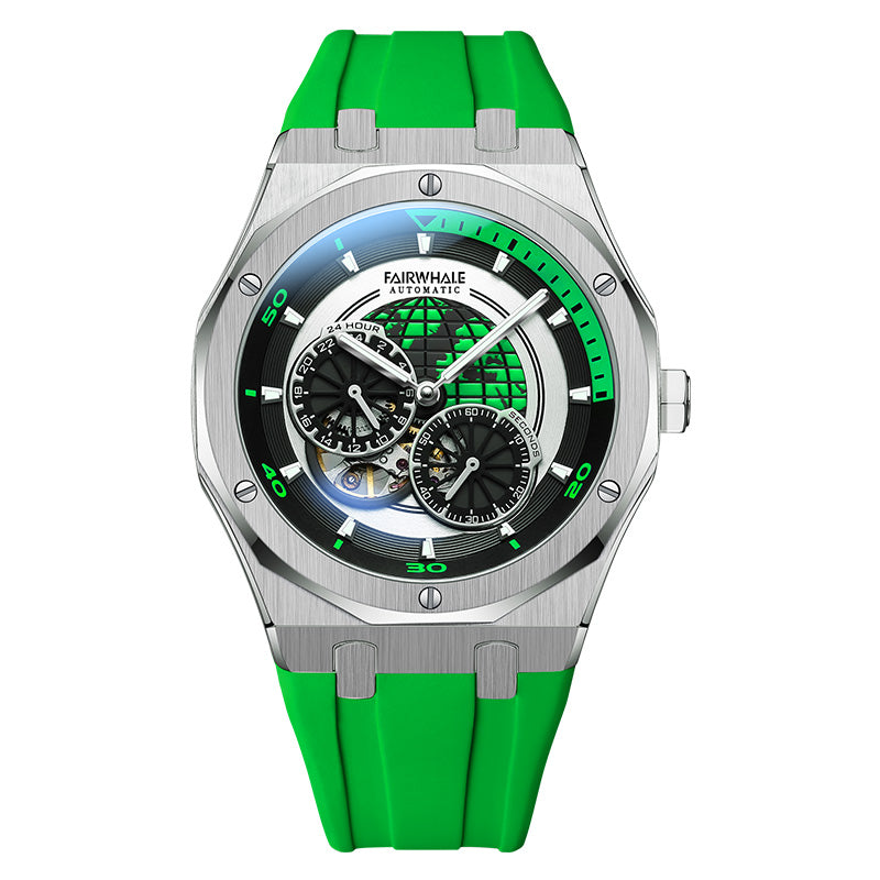 Luxury Fashion Earth Face Design Rubber Strap Mechanical Watch For Men