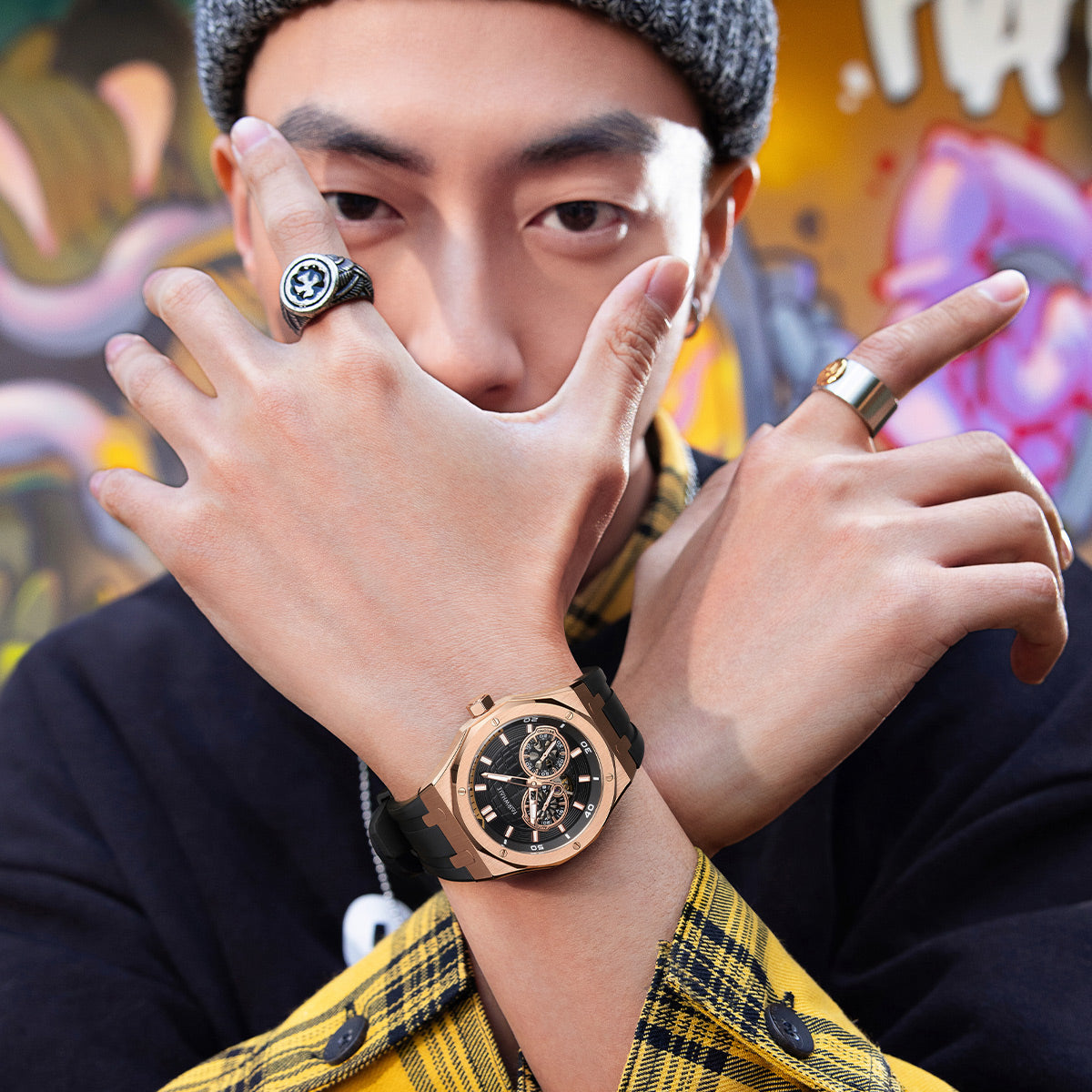 Original Design Watch Men'S Double Flywheel Automatic Mechanical Watch Fashion Casual Business Men'S Clock
