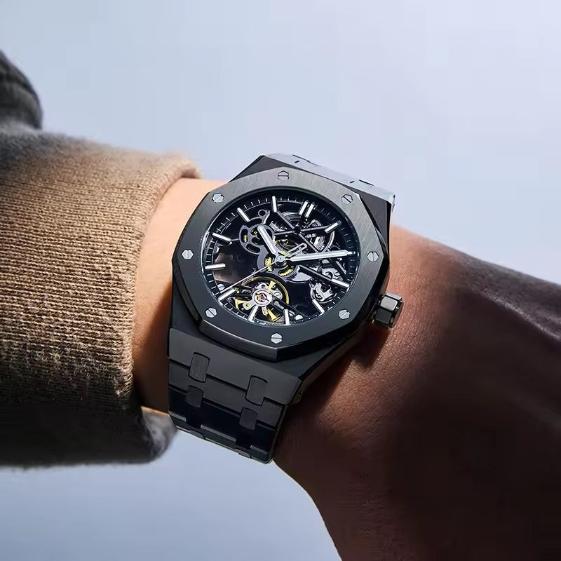 Luxury Automatic Skeleton Men’s Watch – Steel, Luminous, 30M