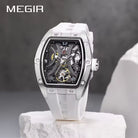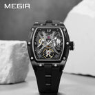 MEGIR 2245 Black Wine Barrel Tourbillon Automatic Watch – Luxury, Hollow Dial, Waterproof, Luminous