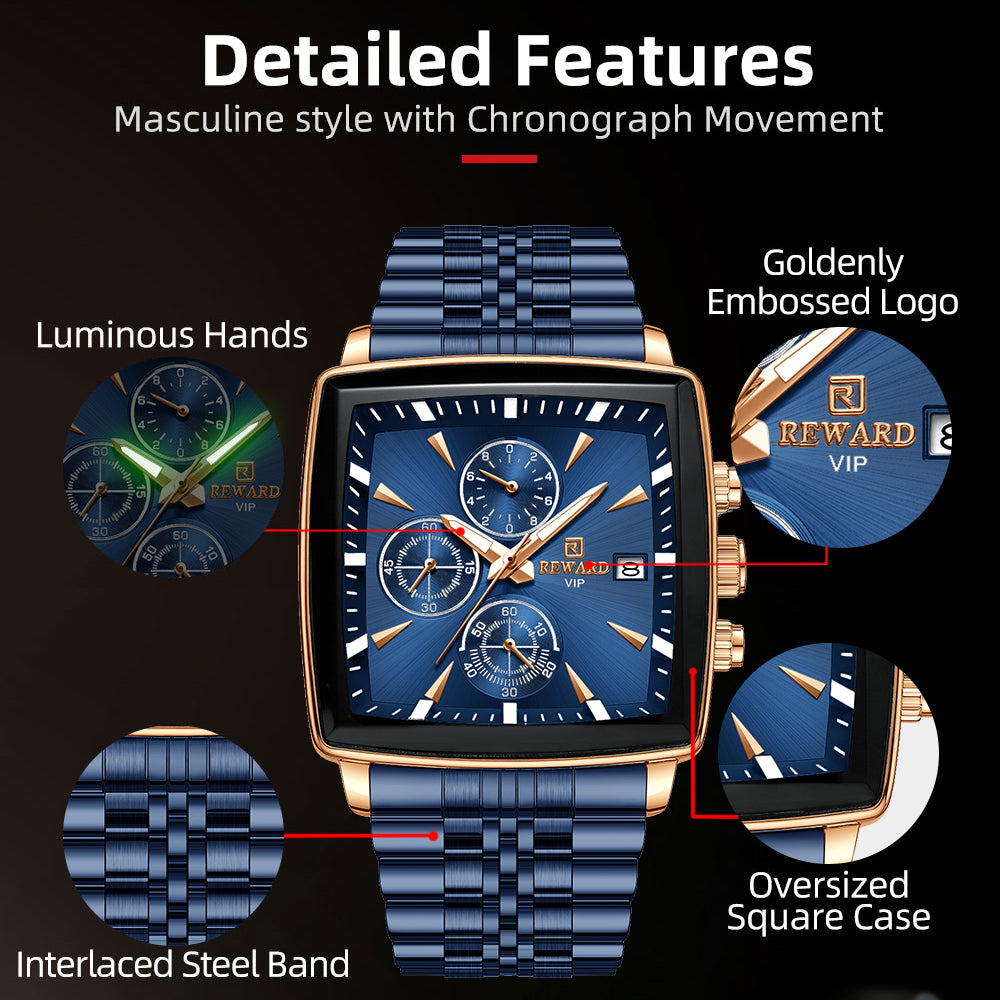 New Luxury Style Stainless Steel Chronograph Working Waterproof Watch For Men