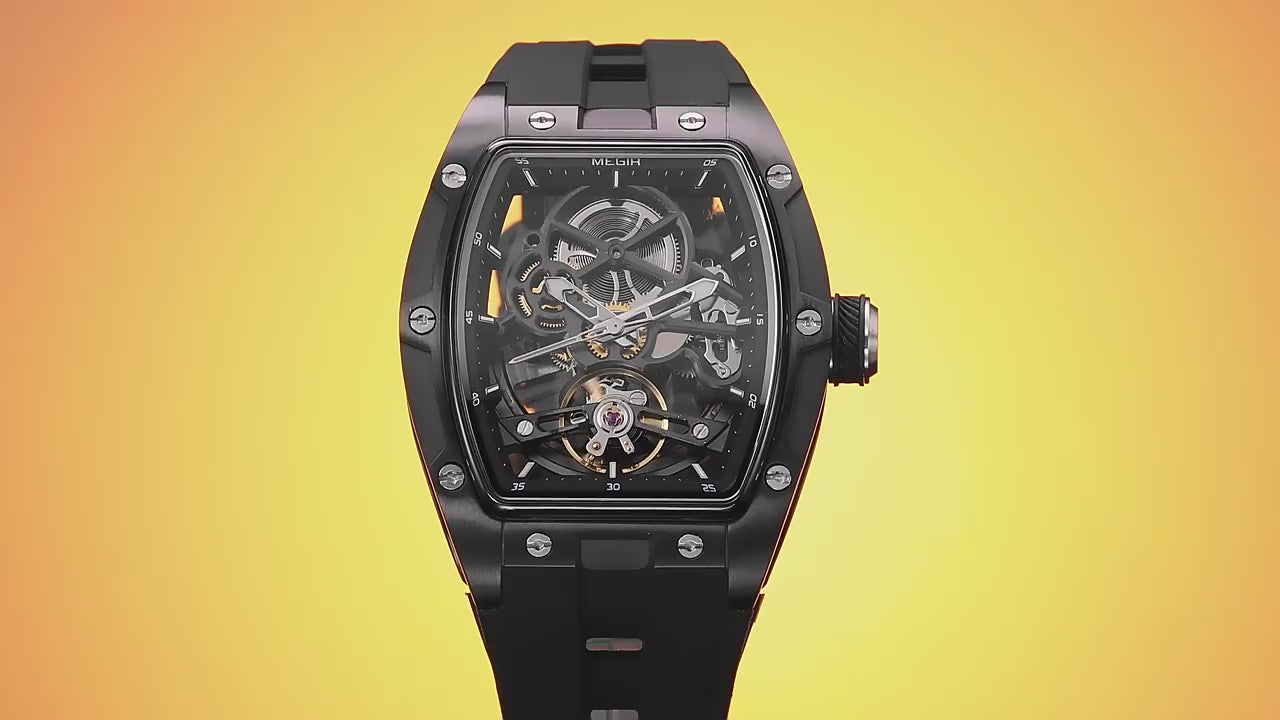 Latest Luxury Design -Skeleton Face With Rubber Strap Mechanical Movement Waterproof Watch